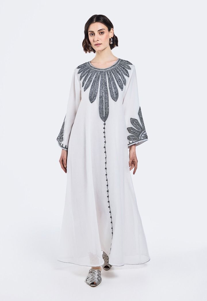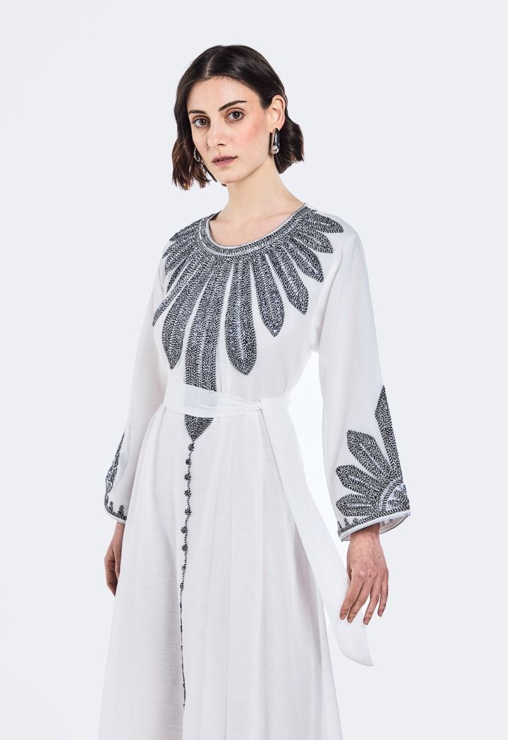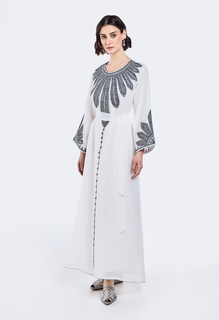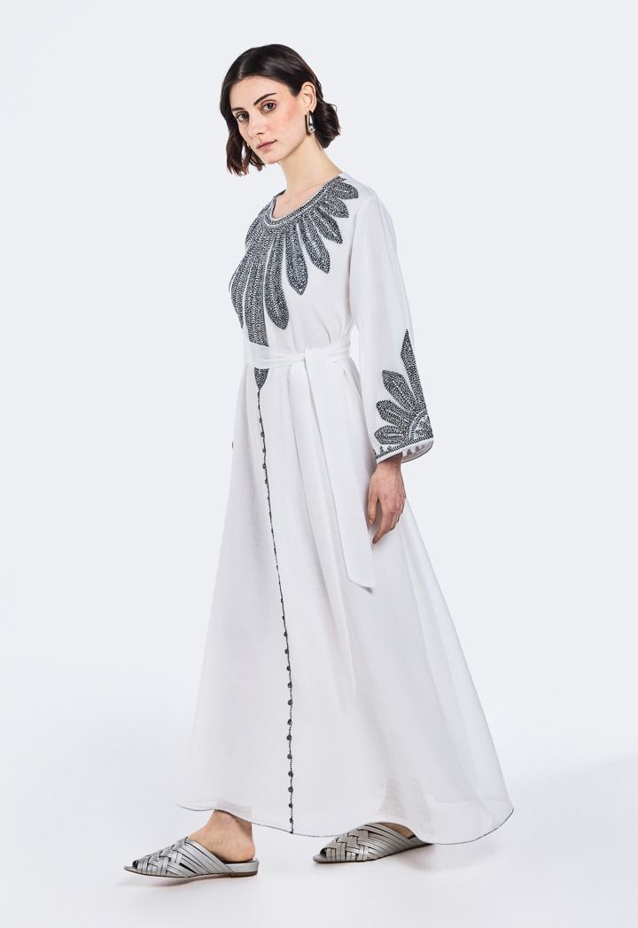 Design: Lurex, Embroidered, Flared, Beads, Lining, Belt