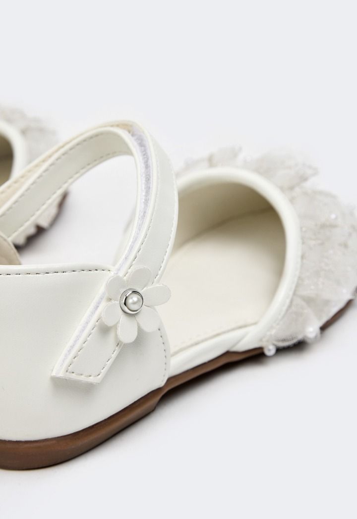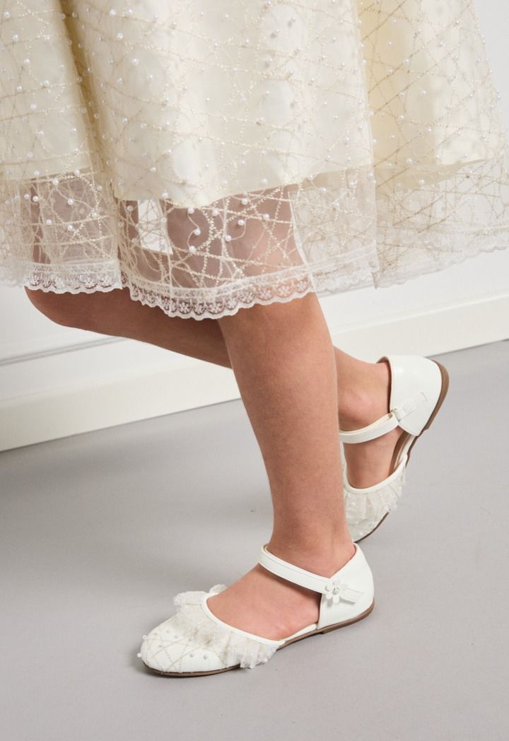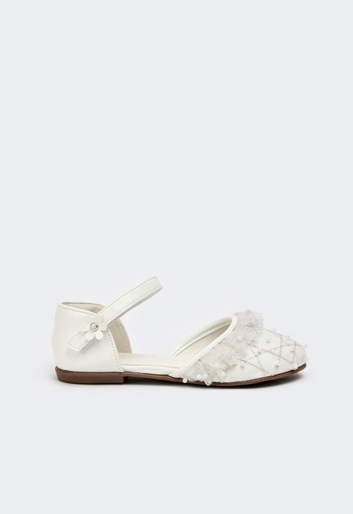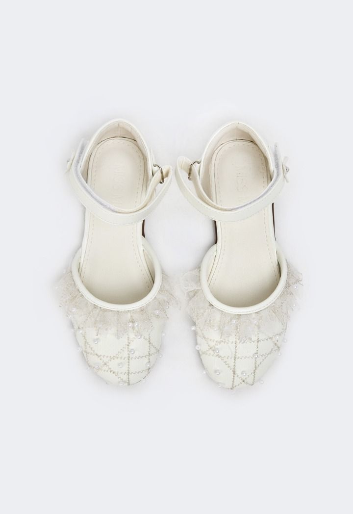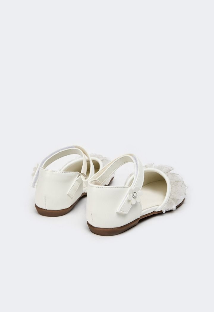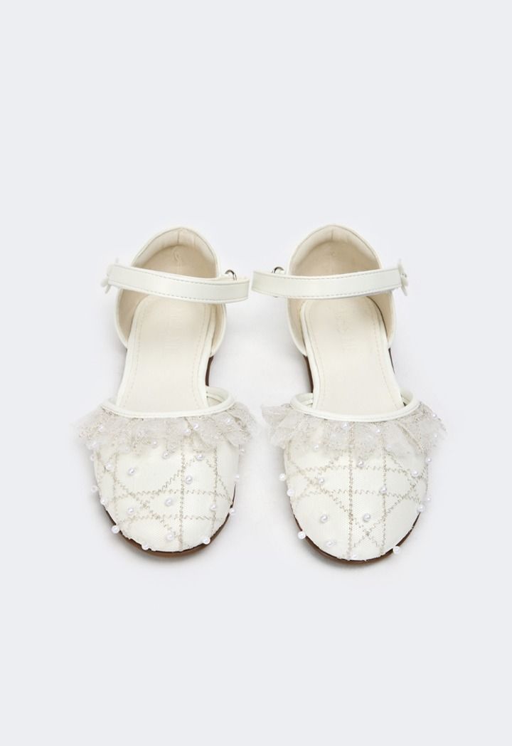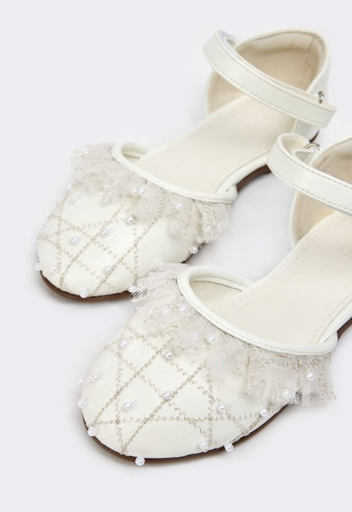 Multiply your daughters collection of shoes with this pair of lurex embroidered flat shoes.