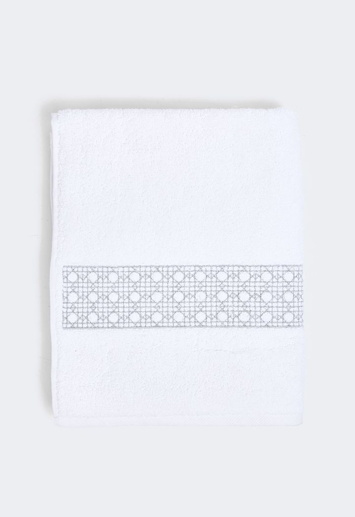 Crafted from soft and absorbent cotton, this optic white towel features subtle grey embroidery, adding a chic and modern accent to its timeless design. The intricate embroidery adds a touch of texture and visual interest, enhancing the overall aesthetic of your bathroom.