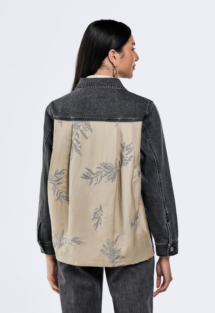 Lurex Leaf Embellished Denim Jacket |