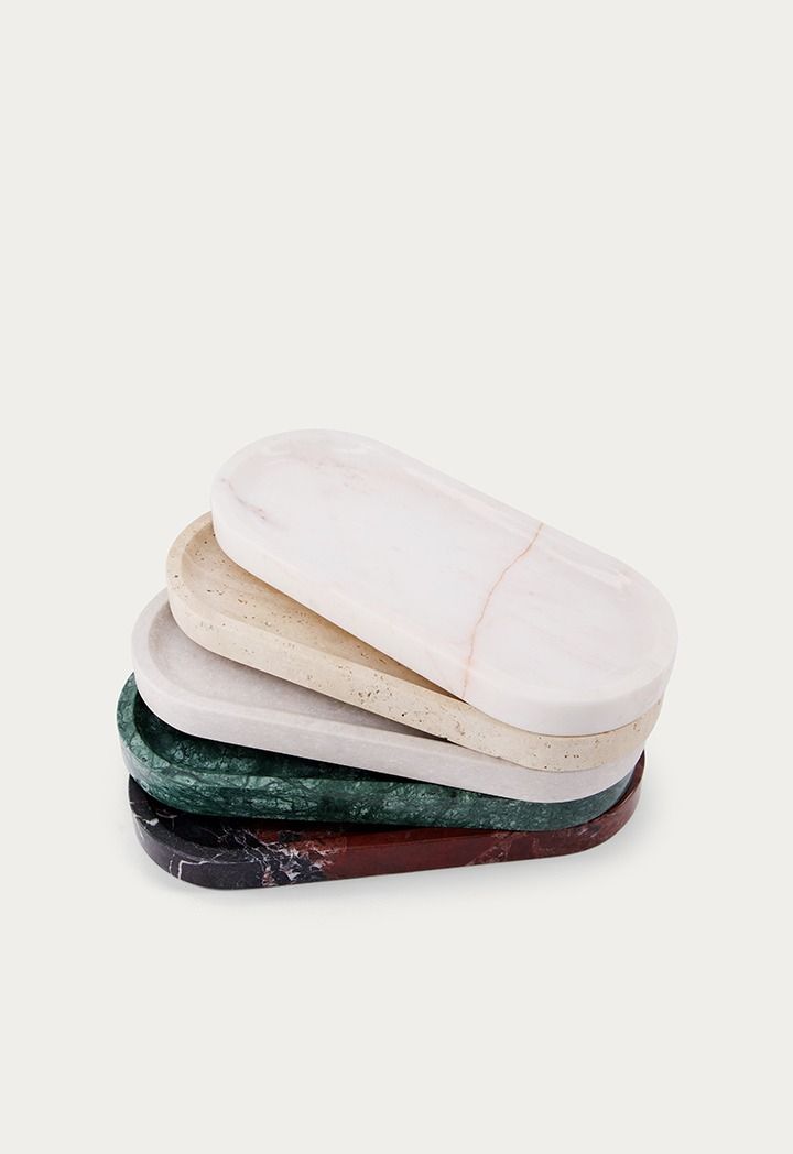 Ideal for keeping on your bathroom countertop, this marble tray is perfect for placing rolled hand towels.