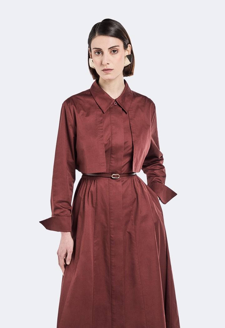 Design: Solid, Flared, Belted, Attached Jacket, Side Pockets