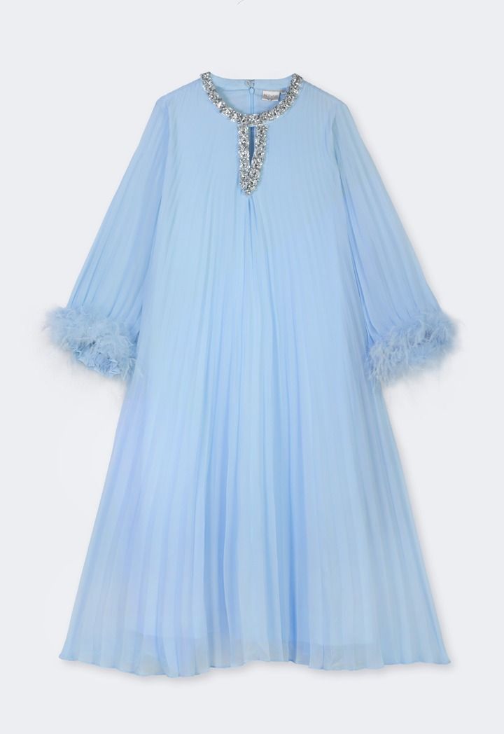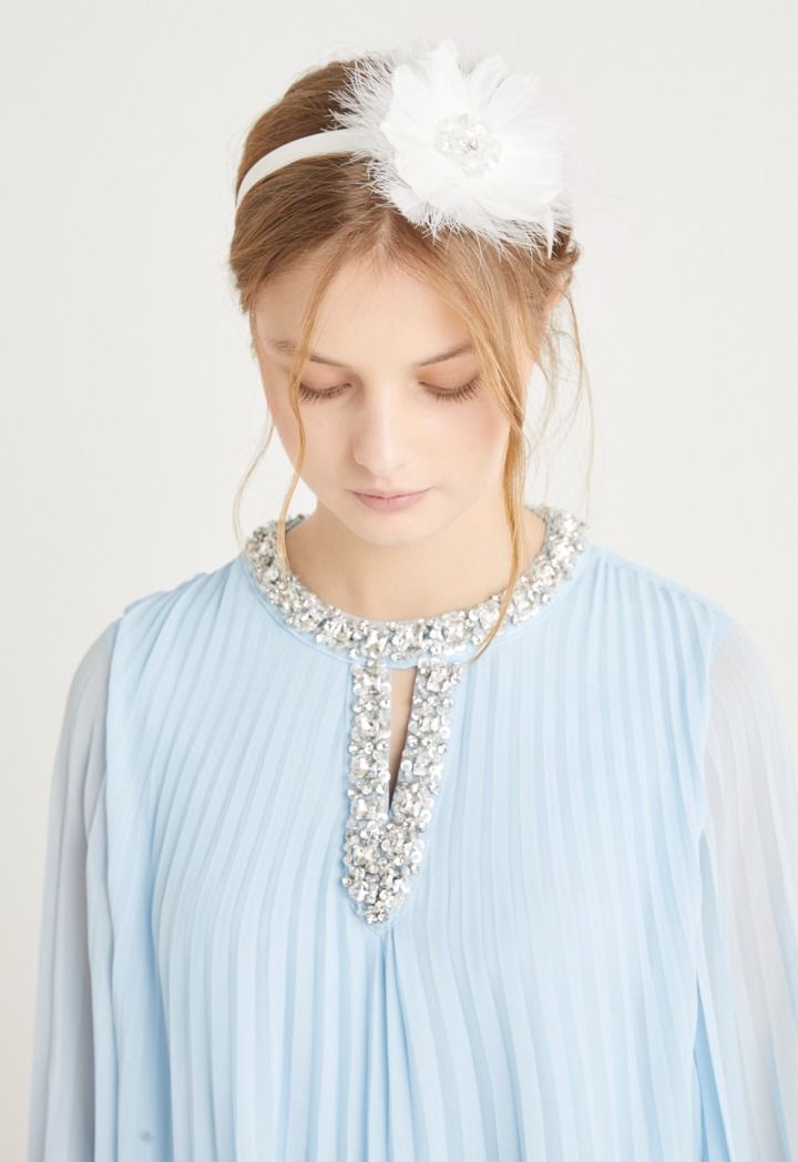 Design: Pleated, Flared, Faux Feather, Attached Lining