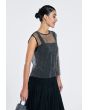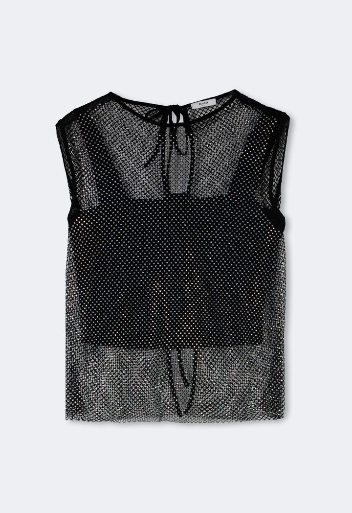 Design: Solid, Mesh, Crystal Embellished, Tie Back, Inner Sleeveless Cropped Top