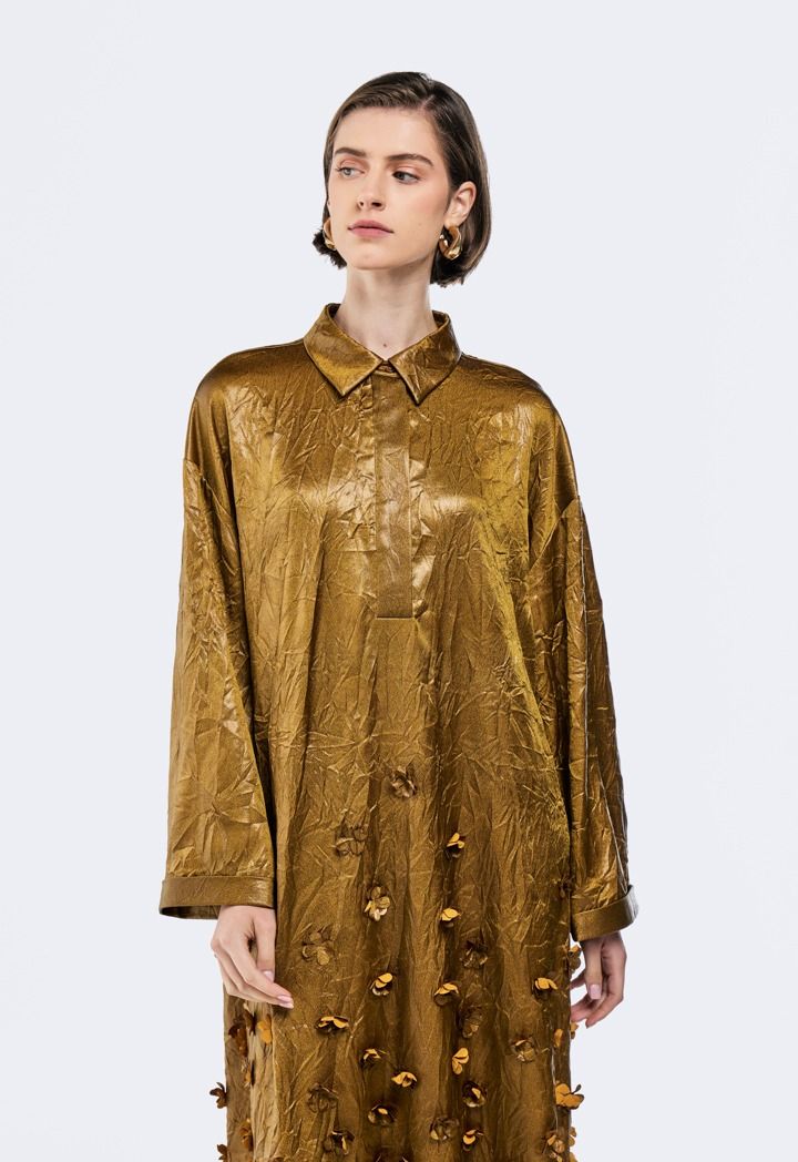 Own the spotlight in our Metallic 3D Floral Embellished Dress, where elegance meets edge.
