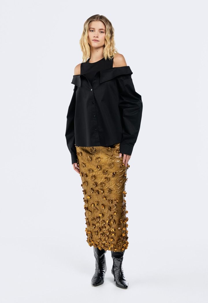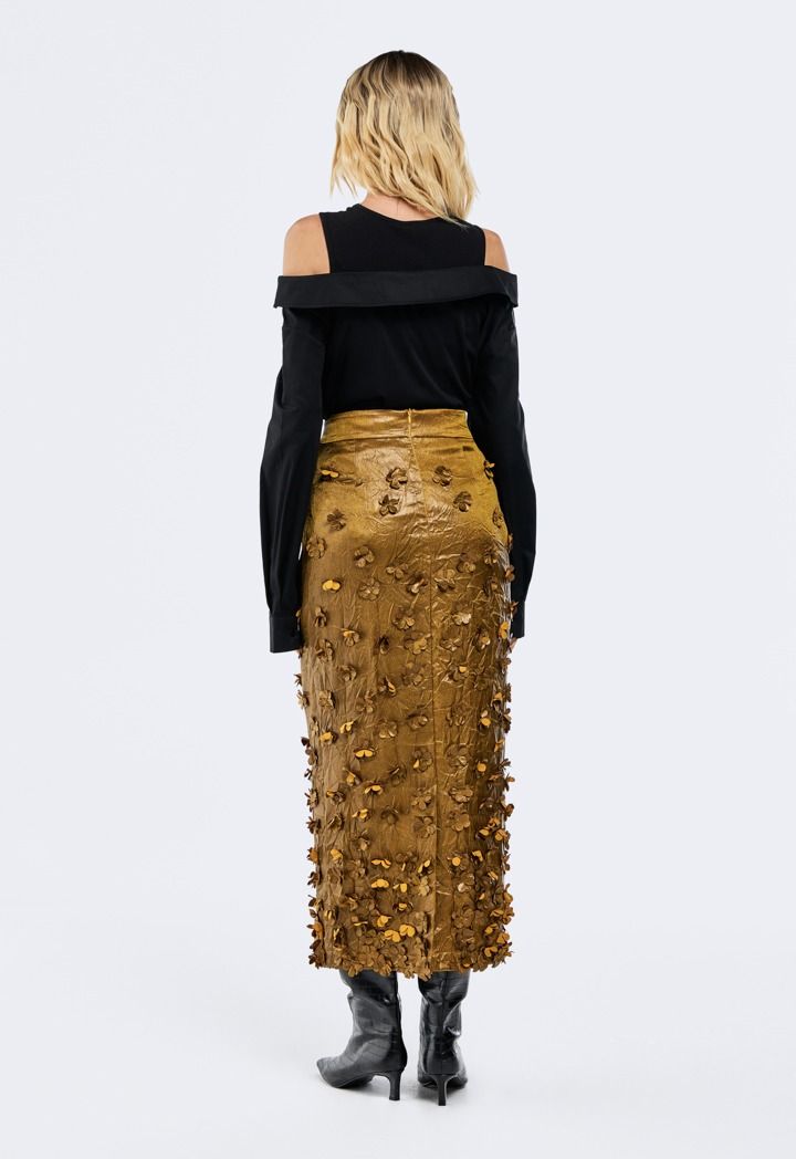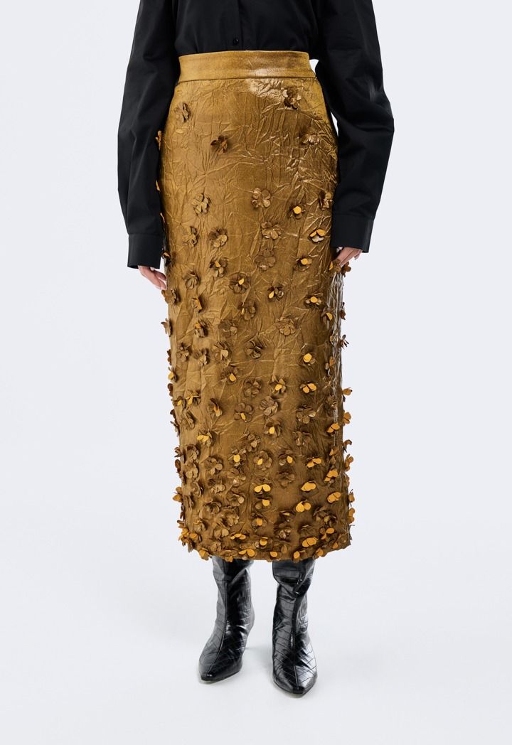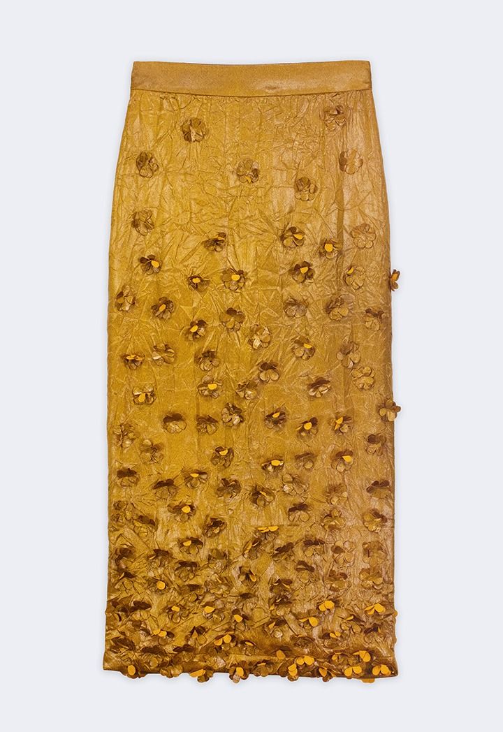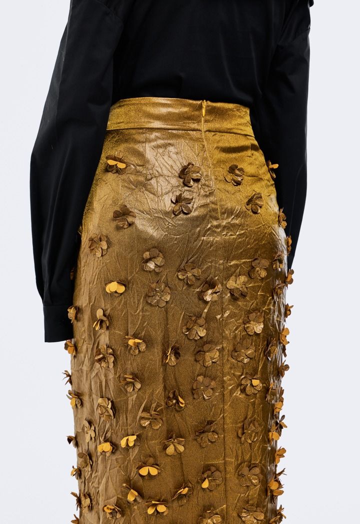 Shine with elegance in our Metallic 3D Floral Embellished Skirt, where fashion meets art.