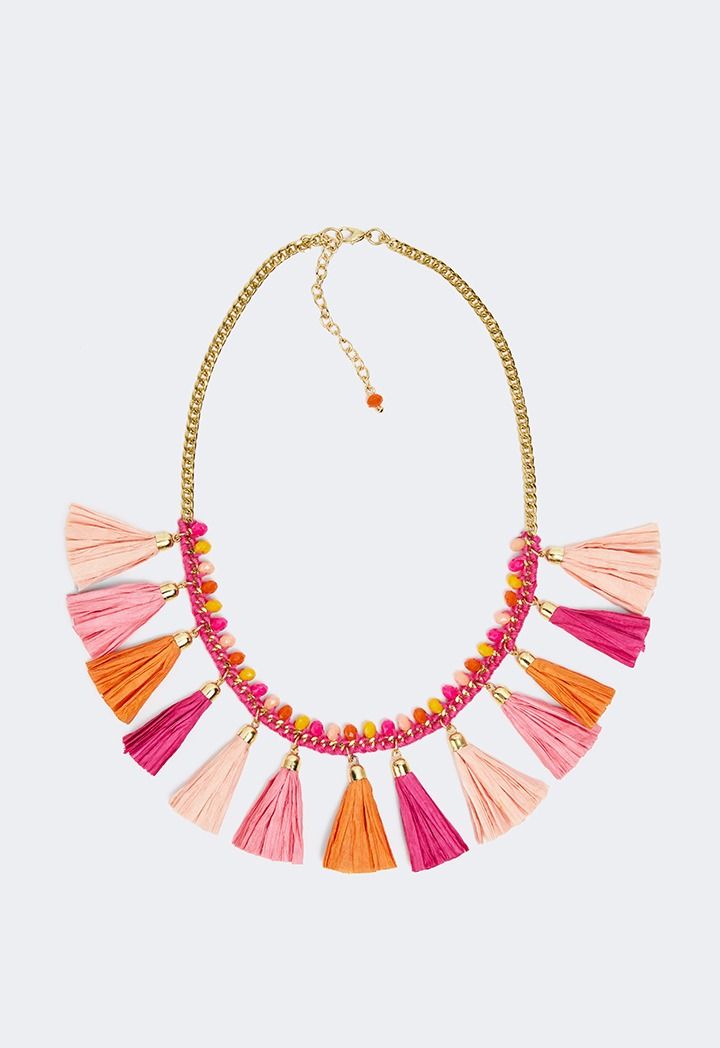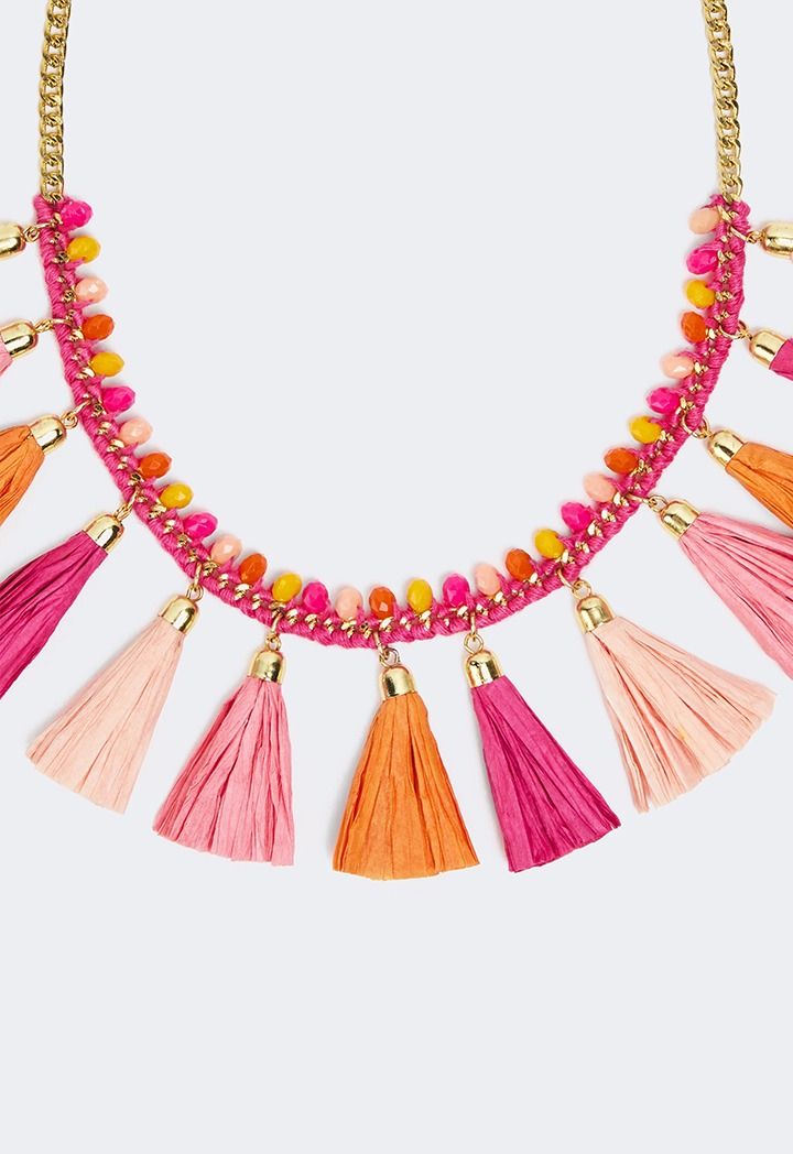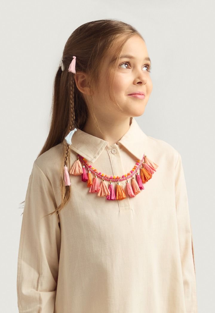 Let your little girl embrace her inner beauty with this mixed necklace featuring a beaded metallic design with some tassels.