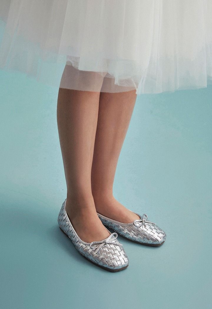 Multiply your daughters collection of shoes with this pair of metallic Bow flat ballerinas.