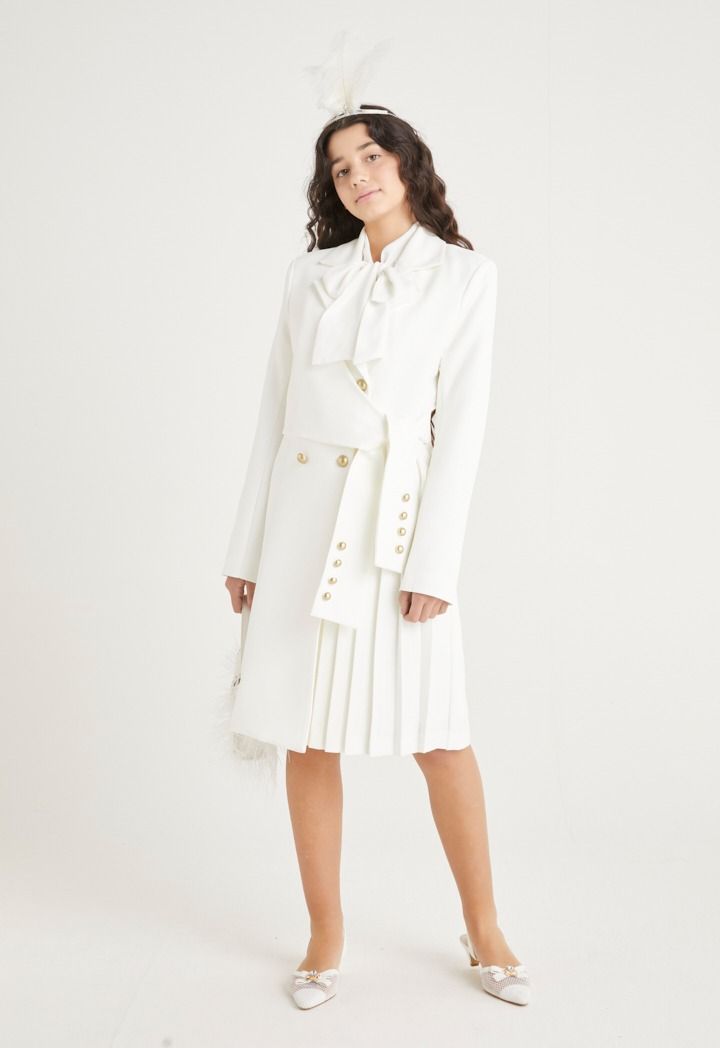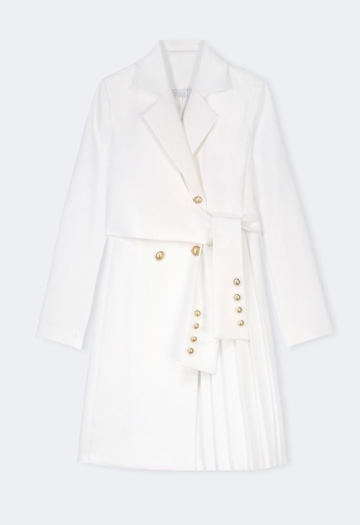 Multiply elegance and sophistication when wearing this dress, with a pleated blazer design.