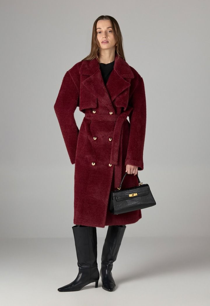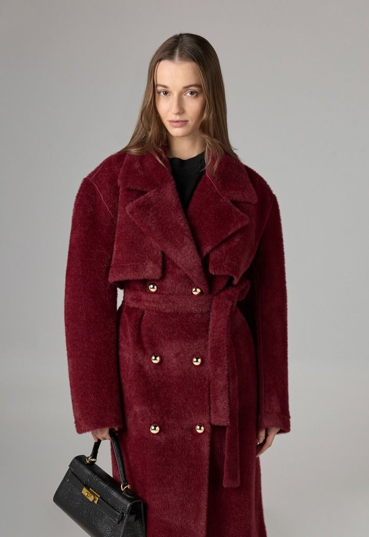 Design: Solid, Faux Fur, Double Breasted, Belted, Pockets