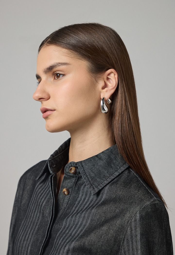 Stylish and trendy, a pair of earrings that features a metallic drop design.
