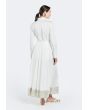 Design: Flared, Pleated, Metallic Foil Hem, Attached Lining