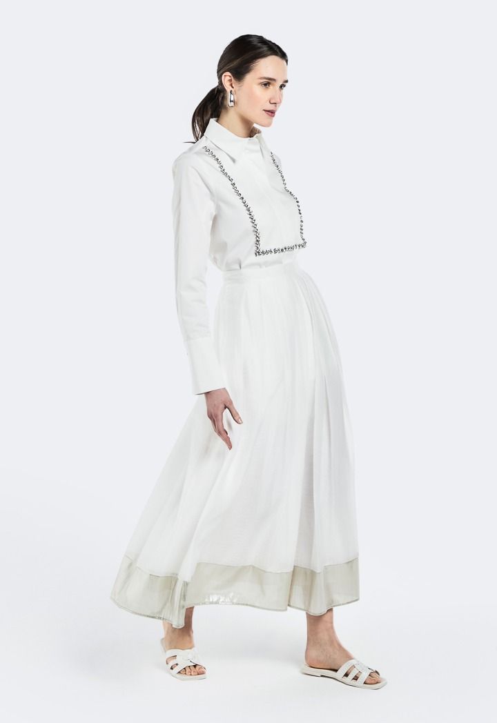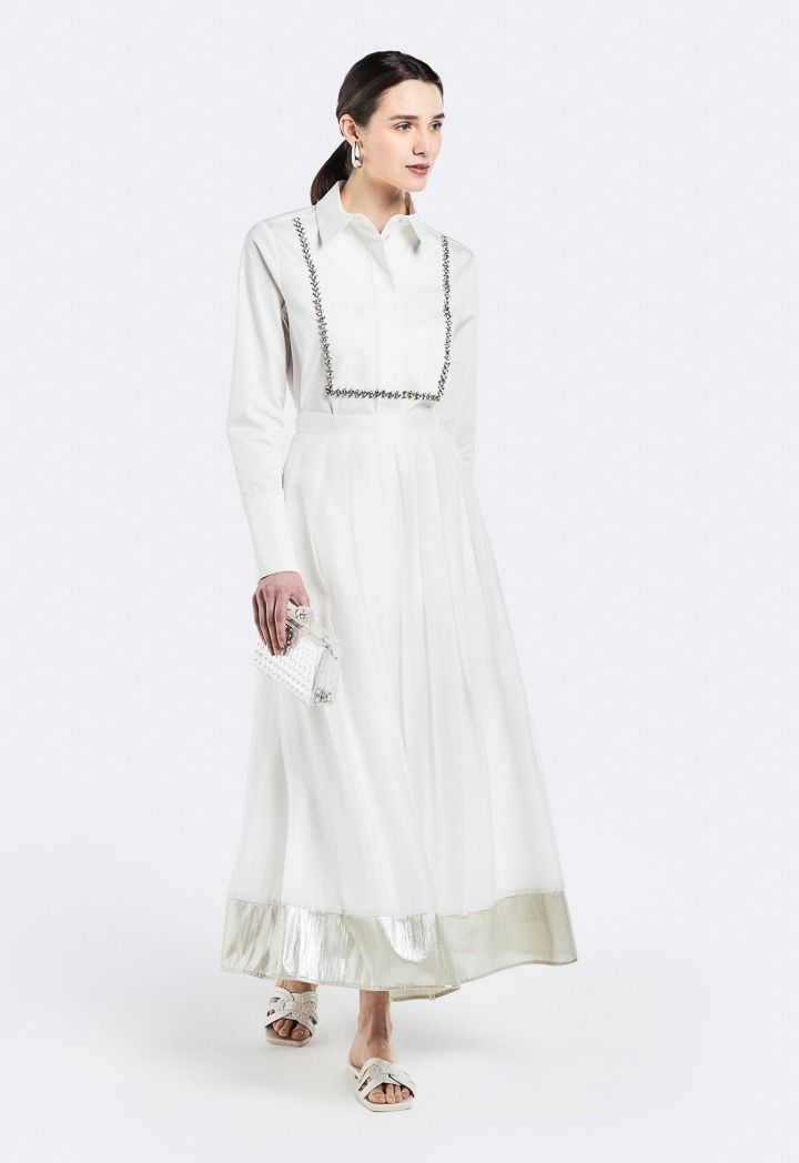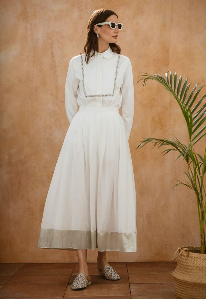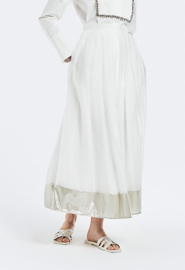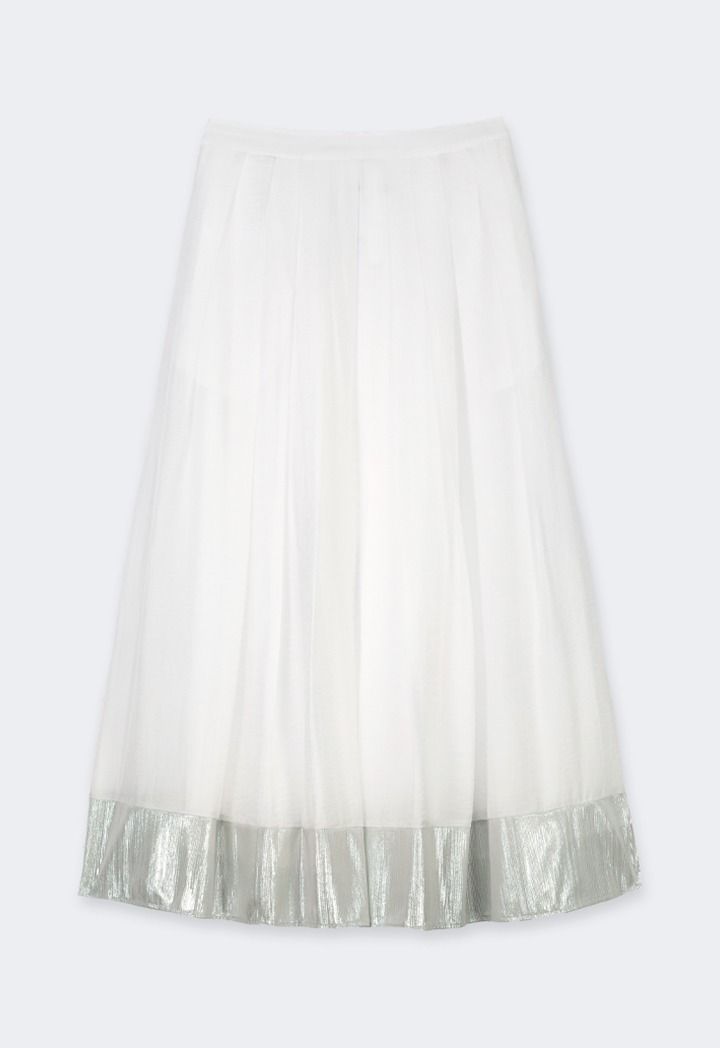 Metallic Foil Hem Pleated Skirt |