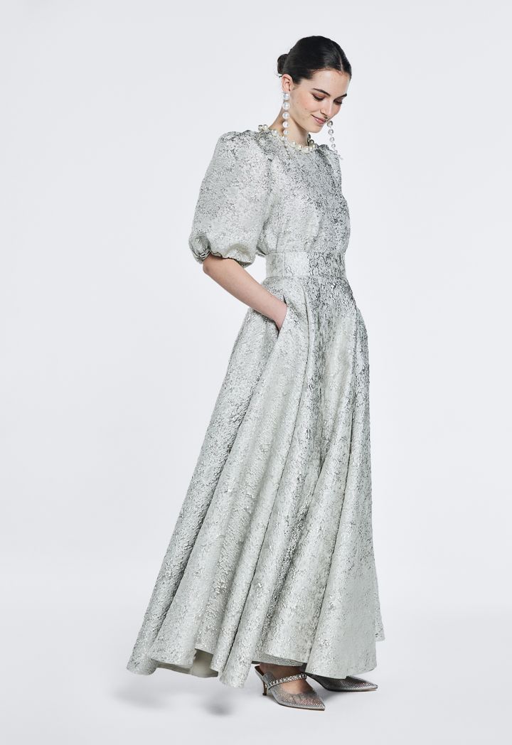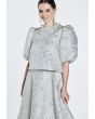 Metallic Jacquard Puff Sleeves Top |