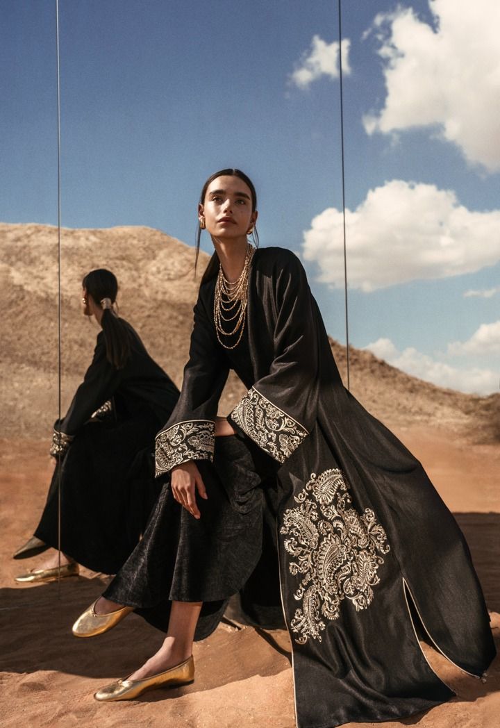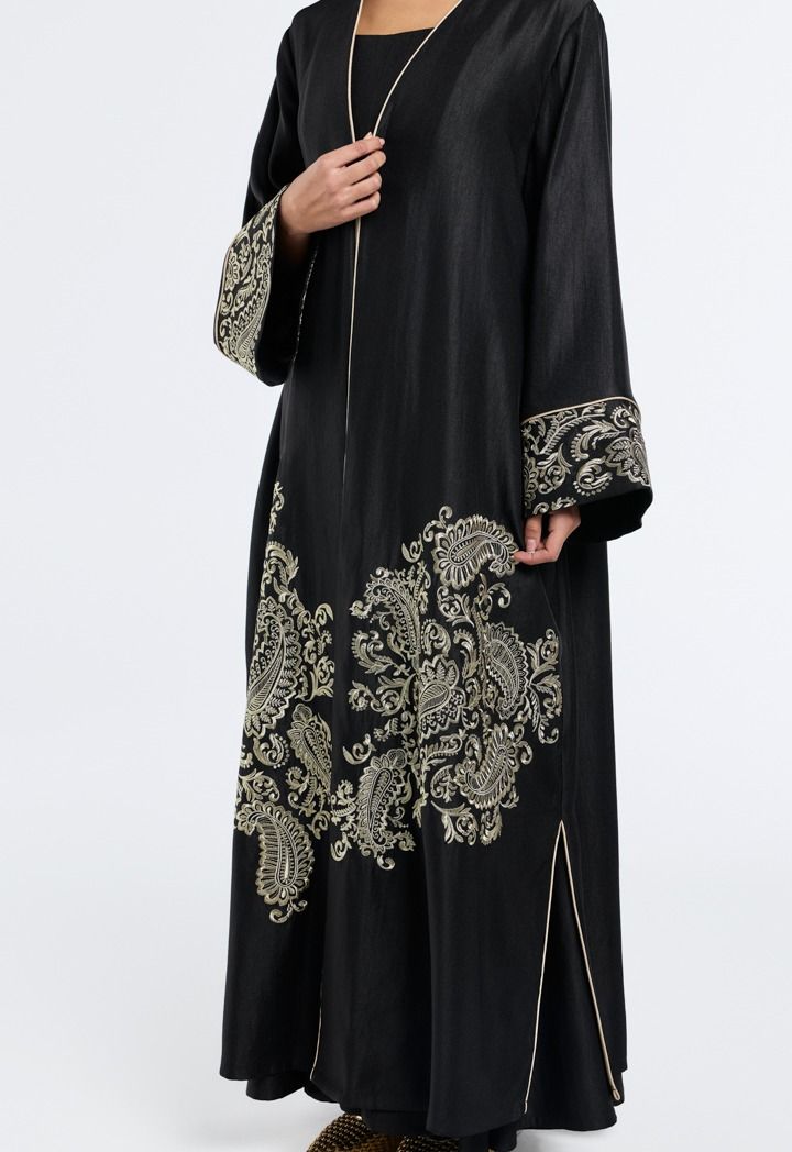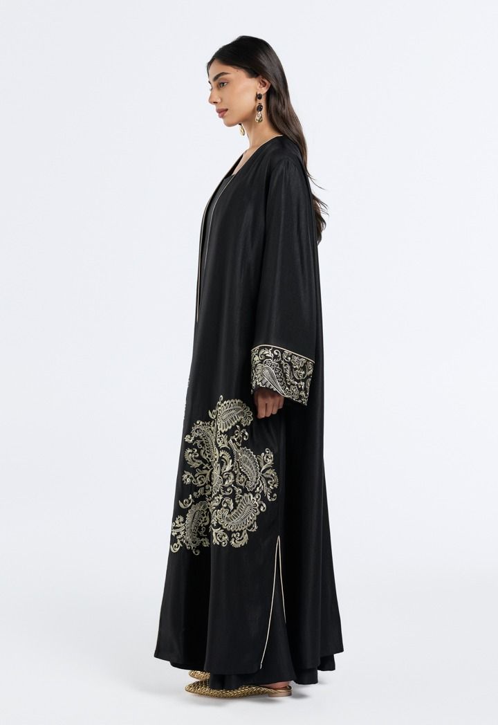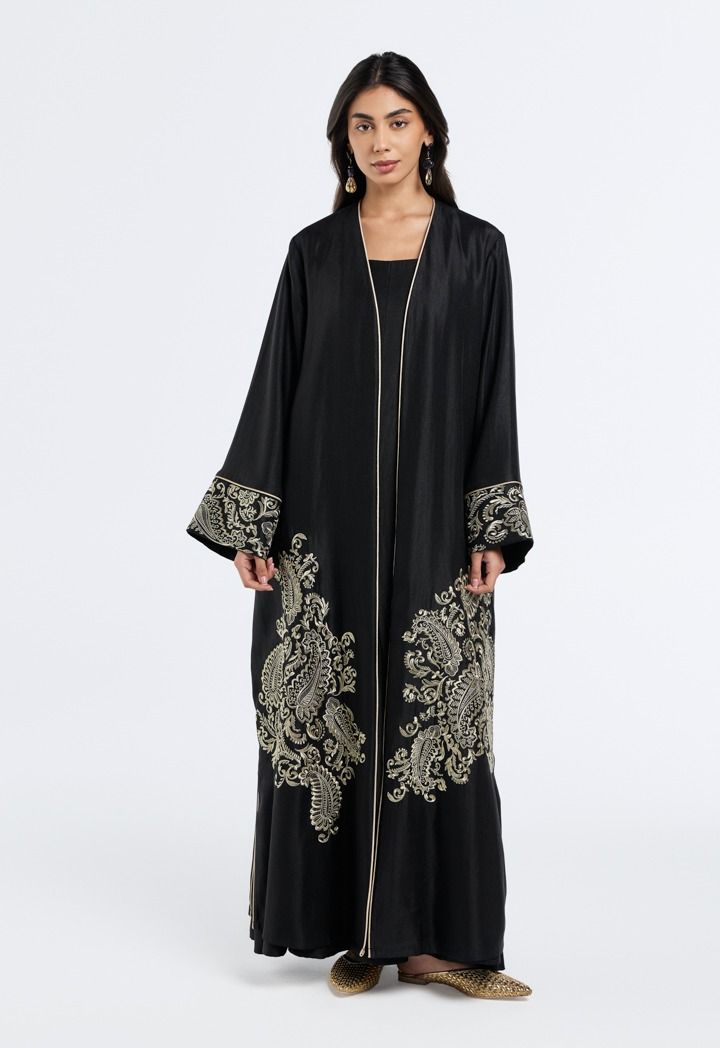 Metallic Paisley-Embroidered Abaya- Ramadan Style |