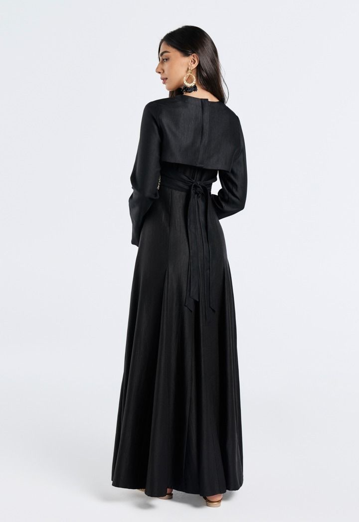 A metallic paisley jacquard layer that adds a refined, luxurious touch when styled over your dress.