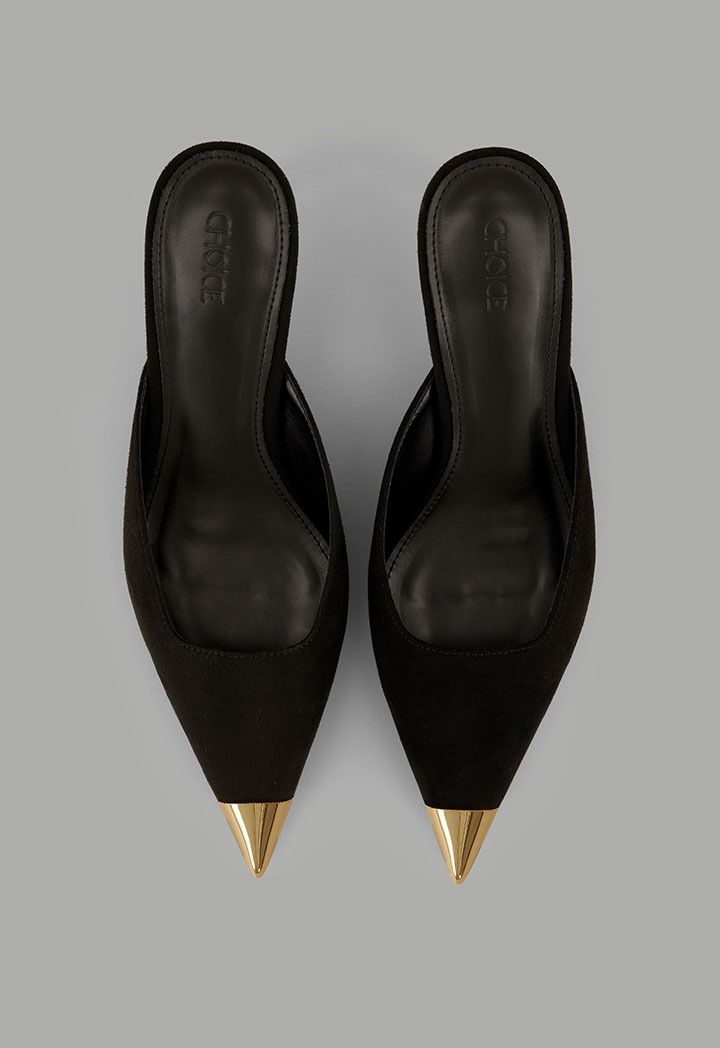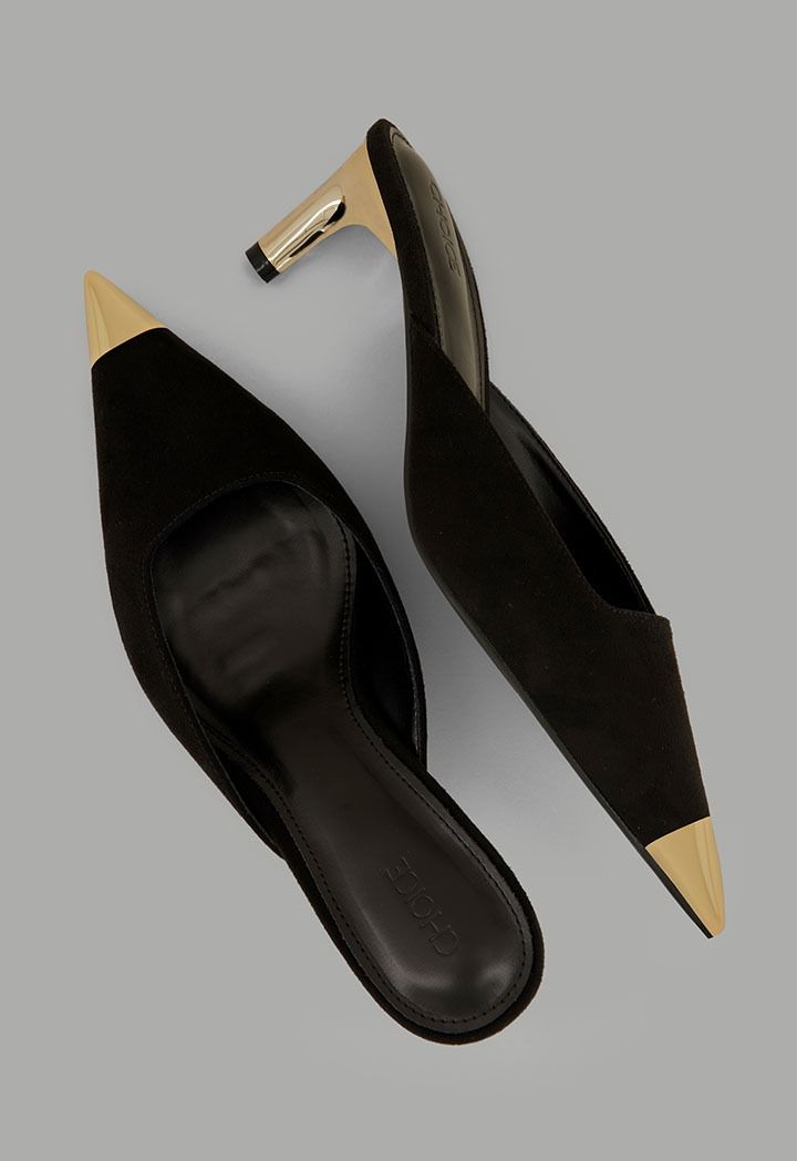 A pair of heeled mules that features a sleek design and short heels for a comfortable wear.