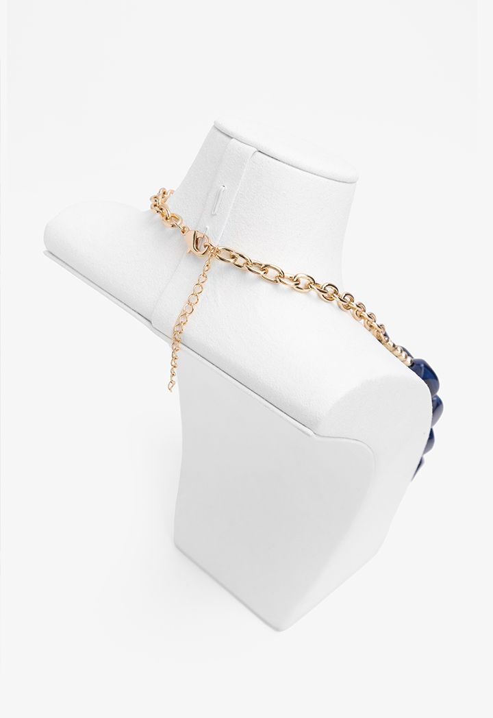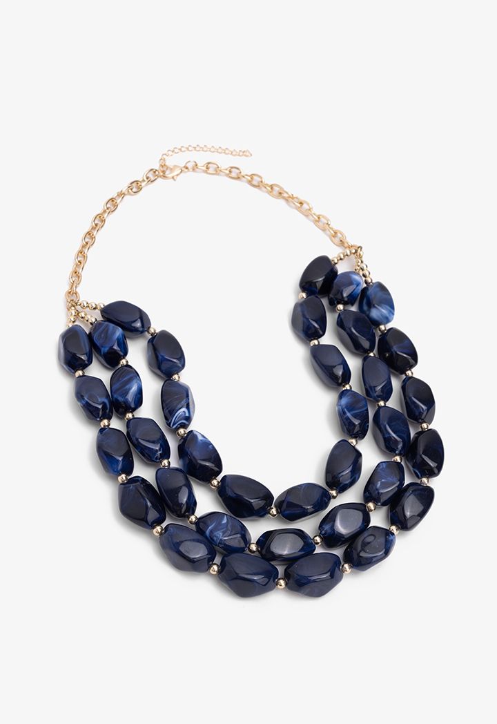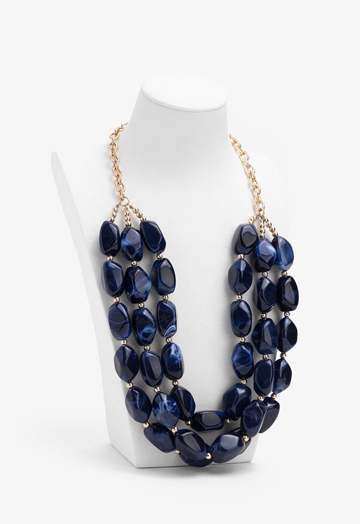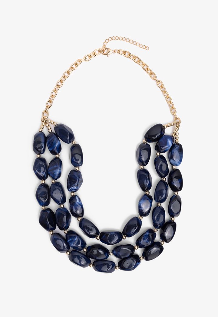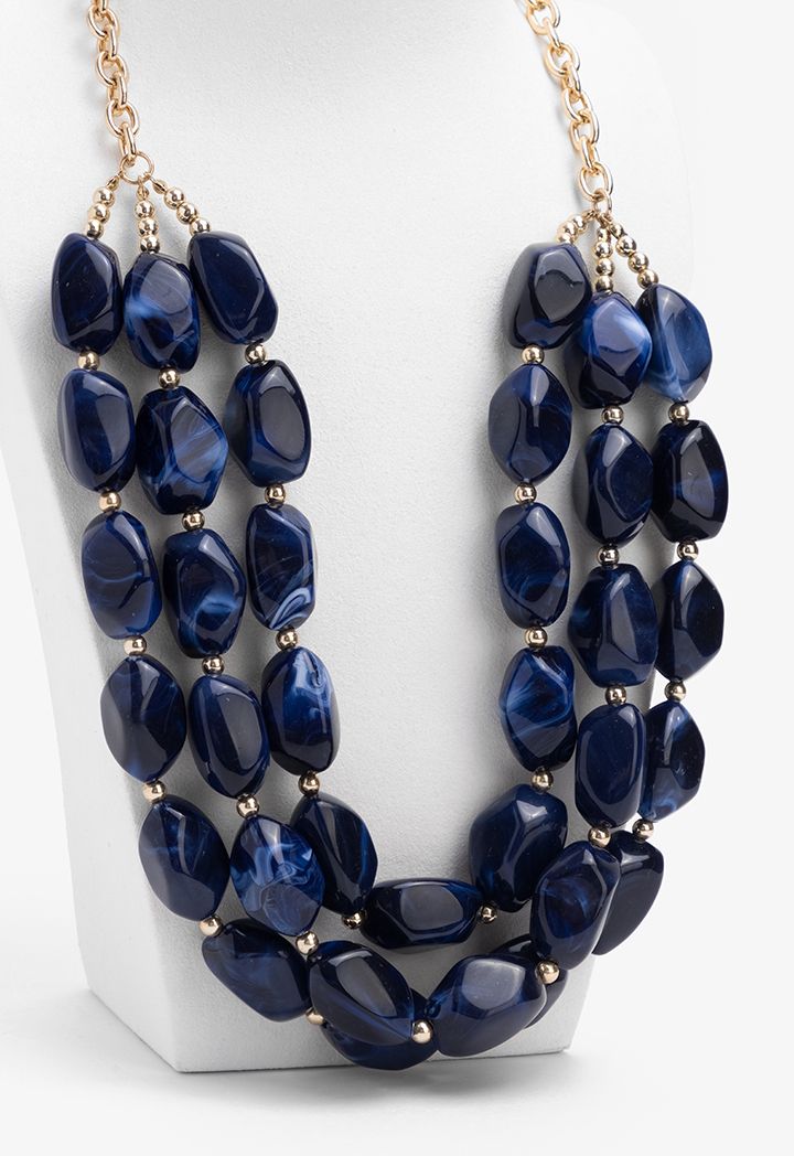 A vibrant necklace that is glossy but also marbled, it is sure to have everyone asking about it.