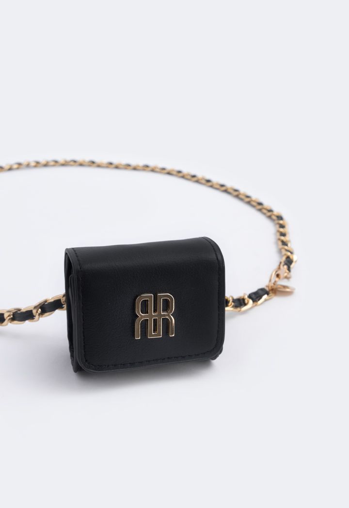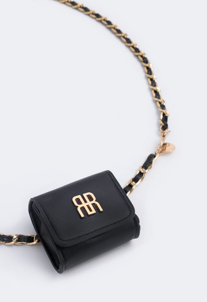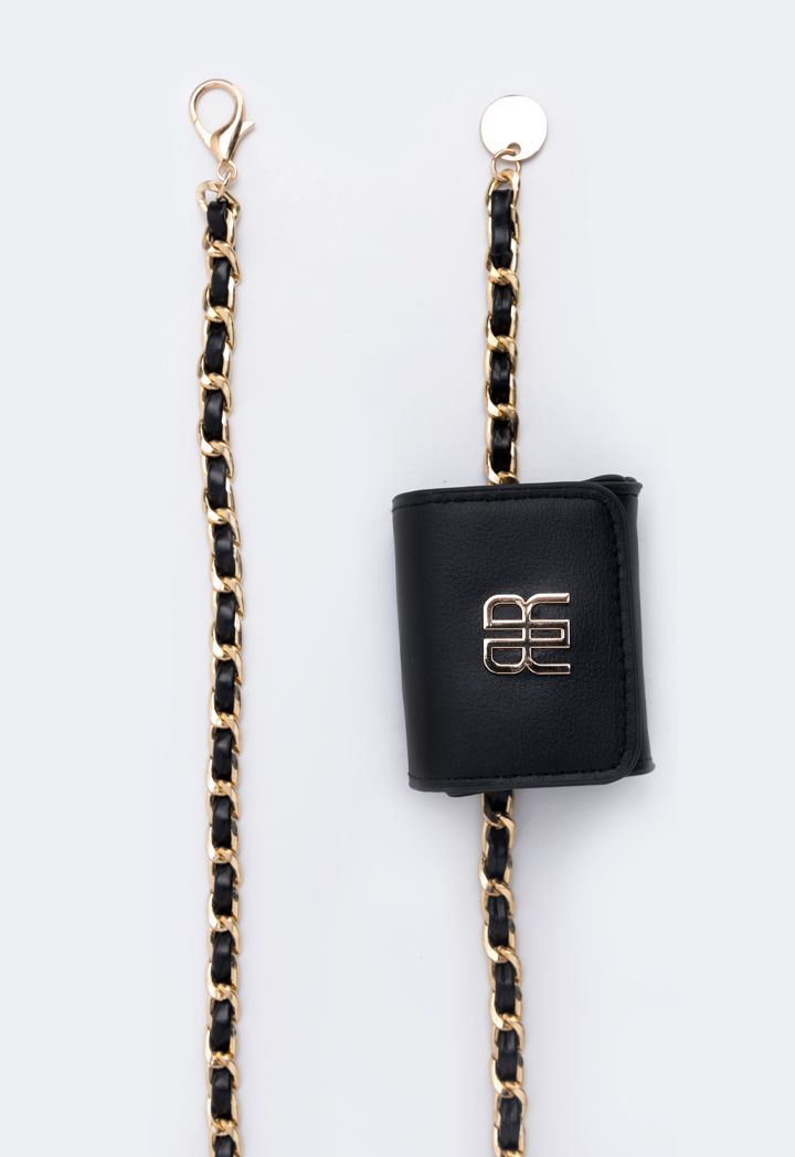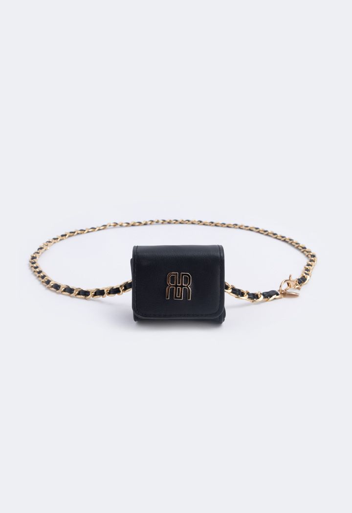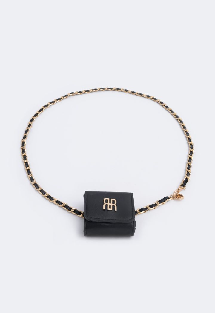 A new approach to belt, featuring a chain belt that includes a miniature bag that is just small enough.