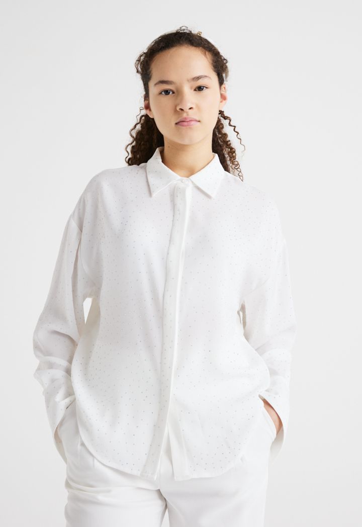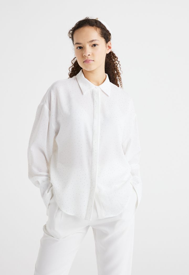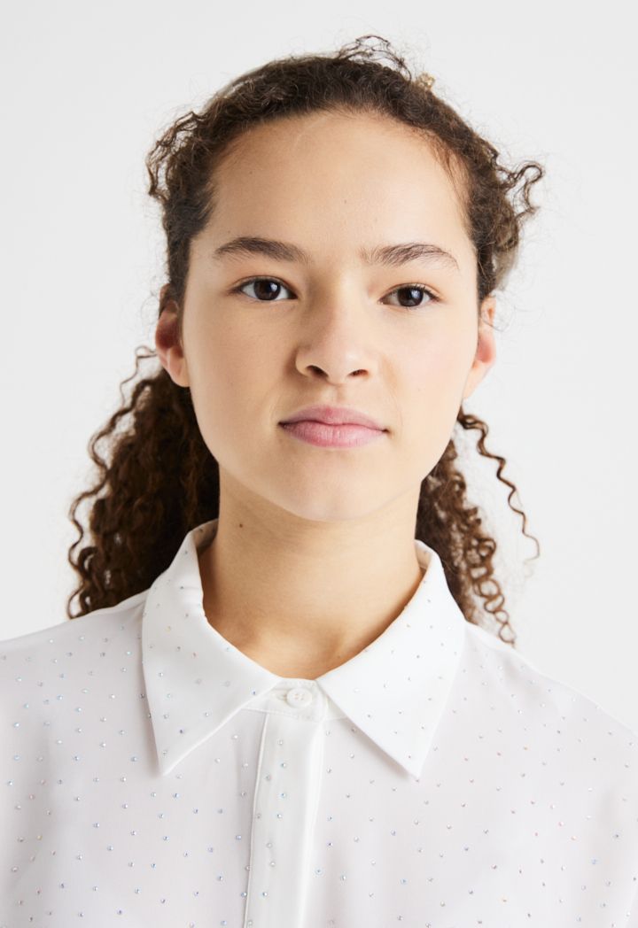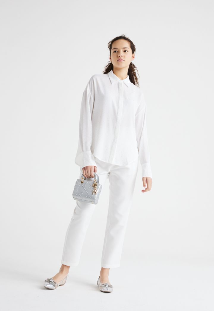 A sparkling shirt that is accentuated with its mini crystal embellished design.