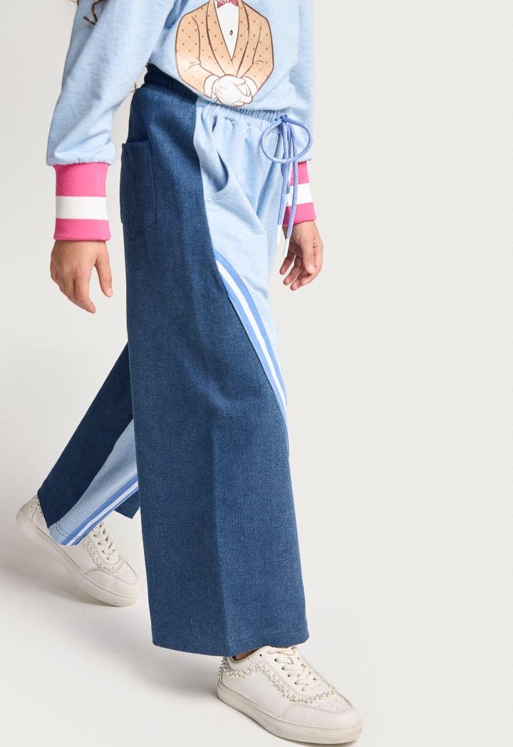 A modern design that combines elegance and comfort thanks to its denim sweatpants design.