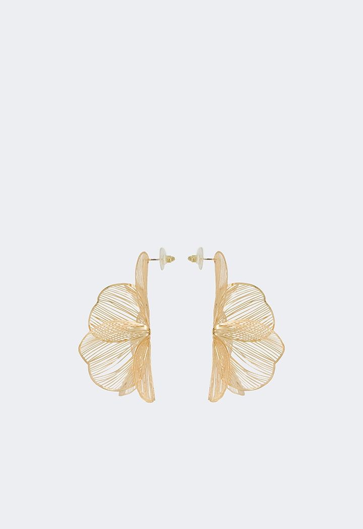 Embellish your ears with this pair of earrings that feature a metallic floral design.