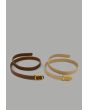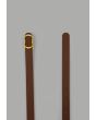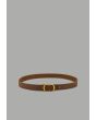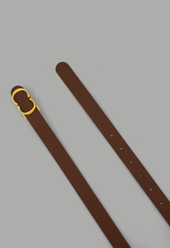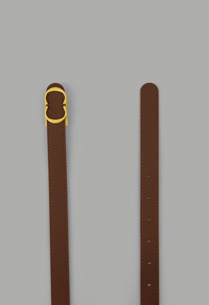 Distinguished by a metallic monogram buckle that is the show stealer with a solid waist strap.