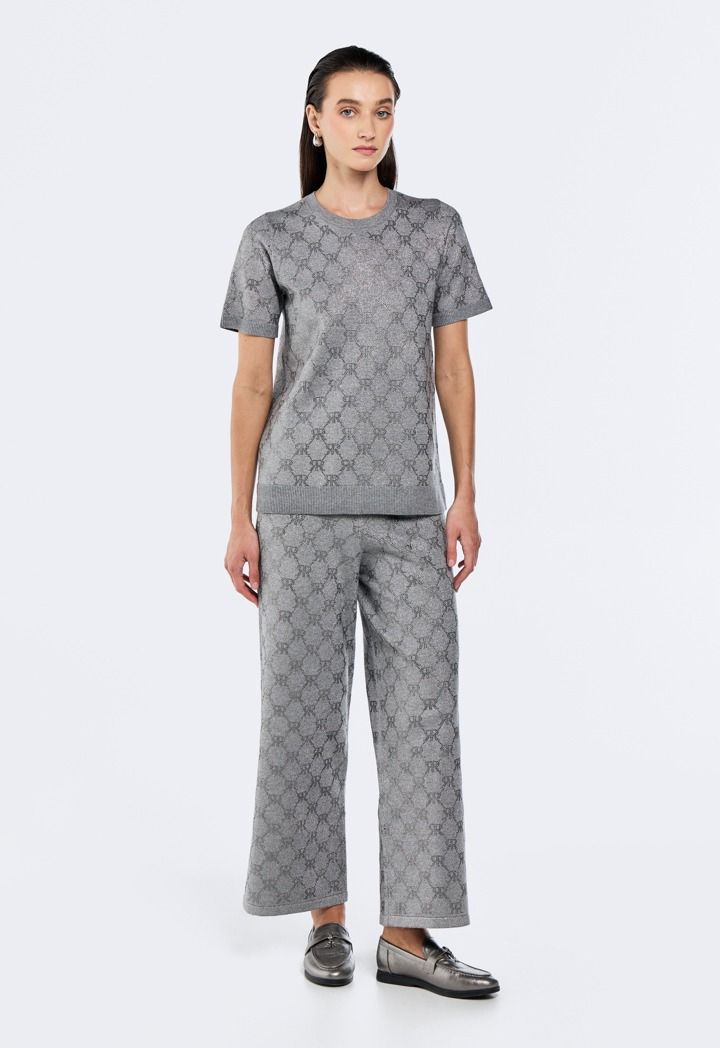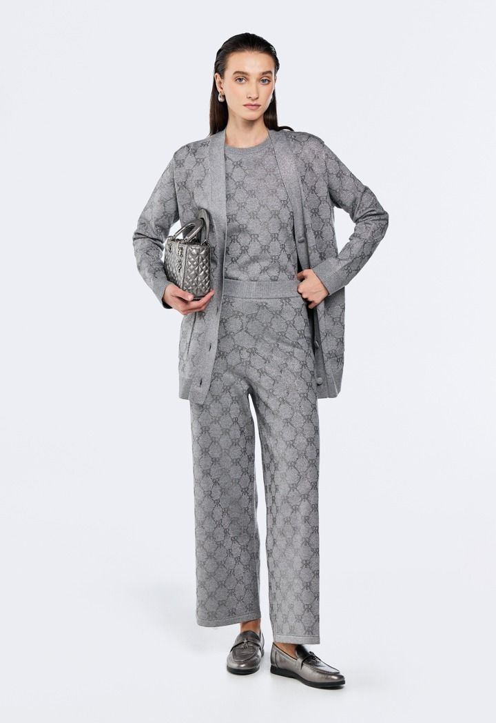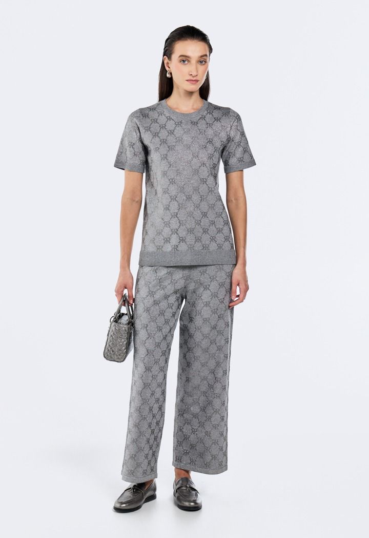 Design: Monogram, Crystal Embellished, Knitted, High Waist, Straight Cut