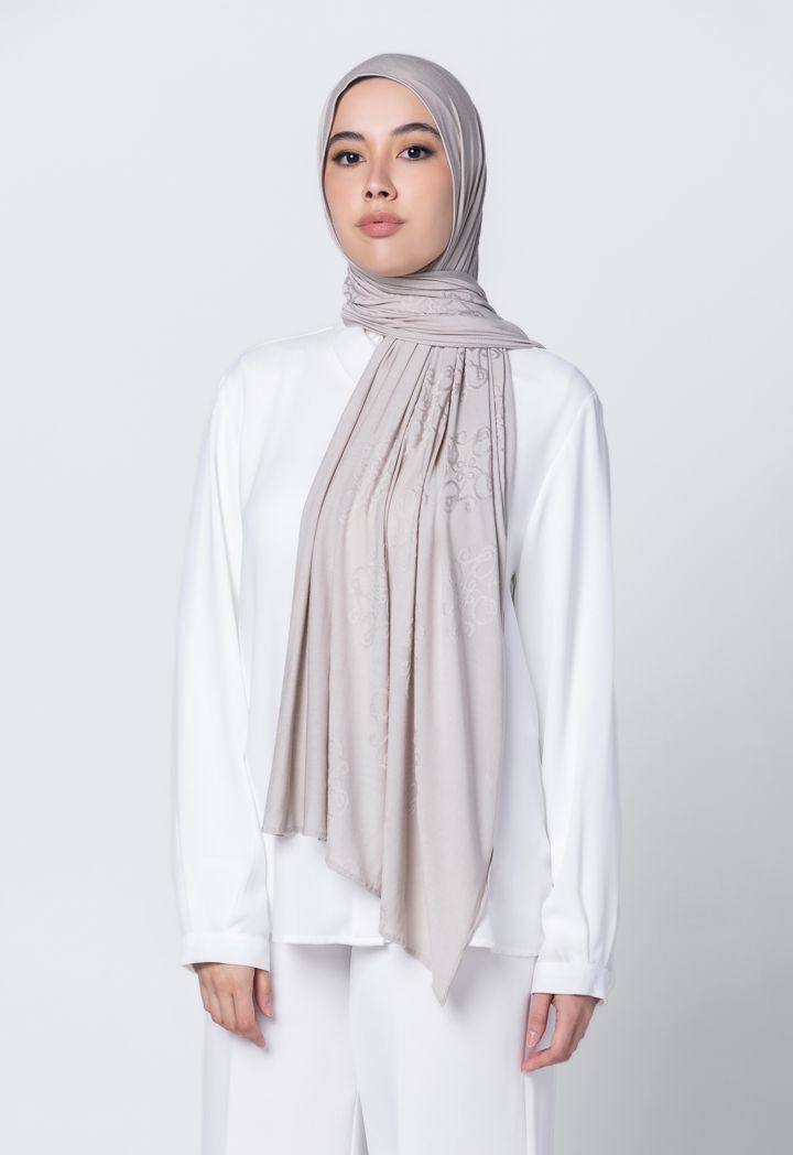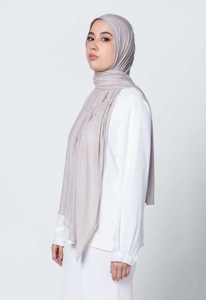 A special hijab design that features Riva's signature monogram to match it with you Riva attires.