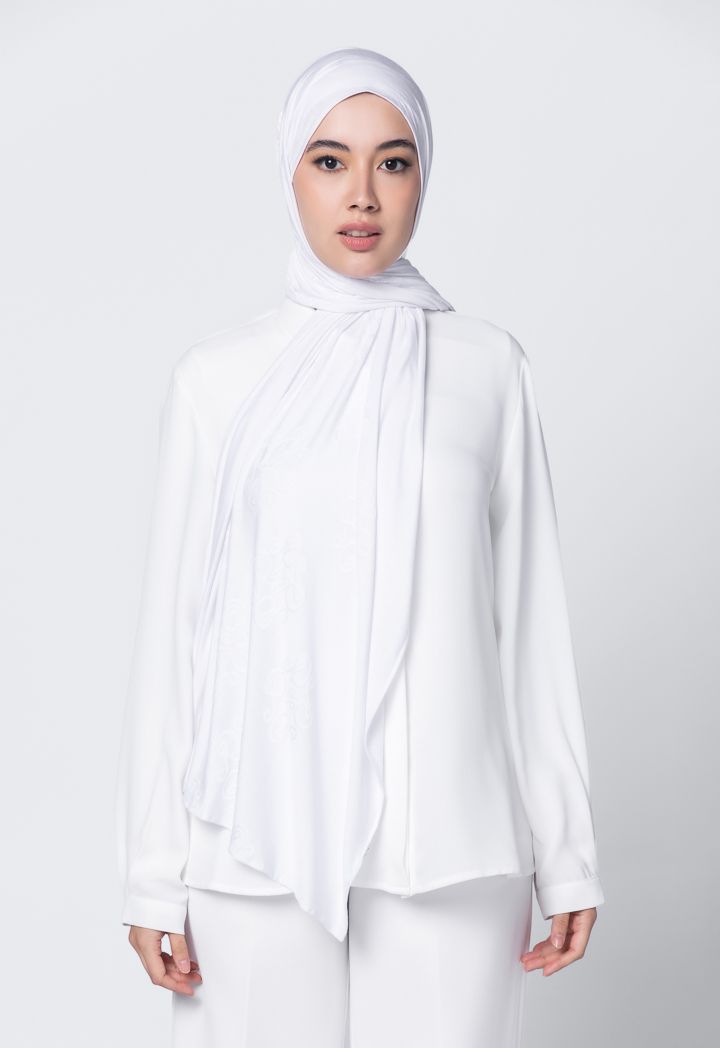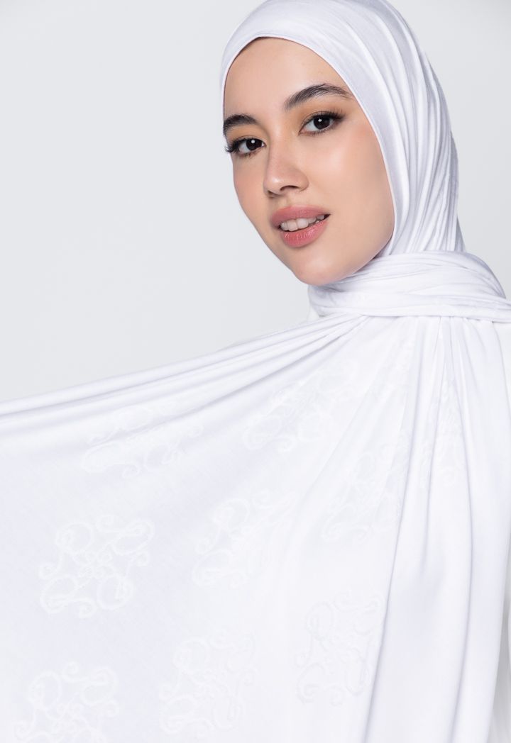 A special hijab design that features Riva's signature monogram to match it with you Riva attires.