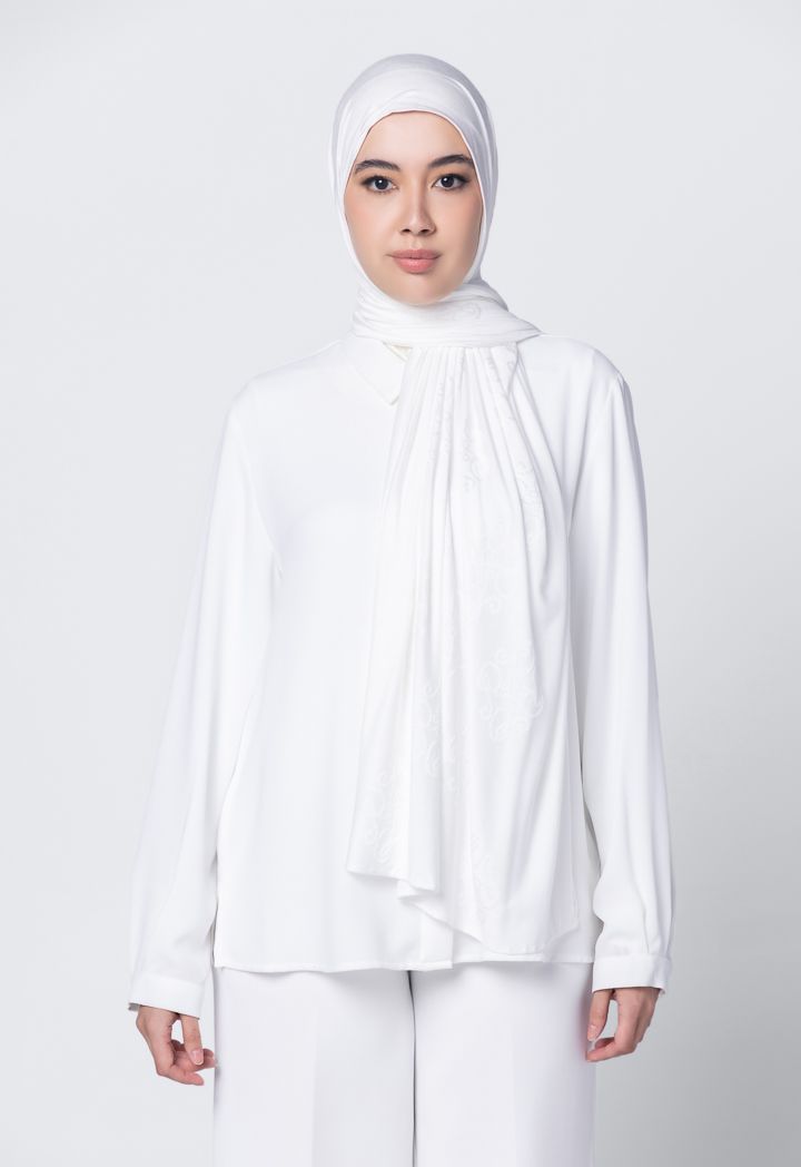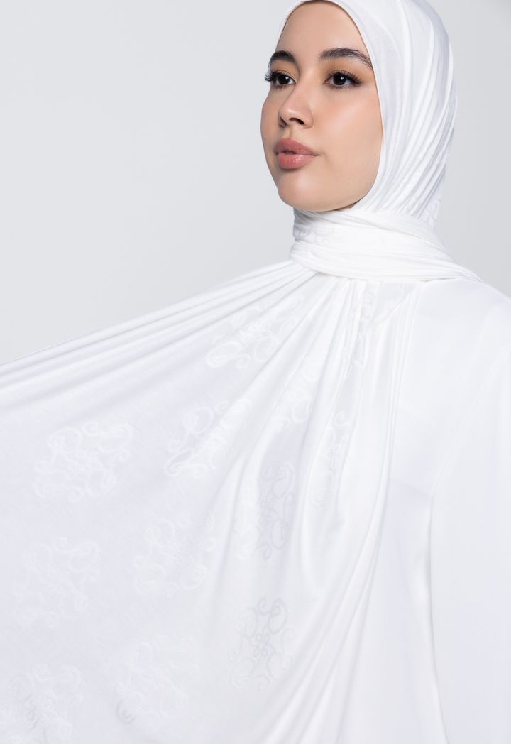 A special hijab design that features Riva's signature monogram to match it with you Riva attires.