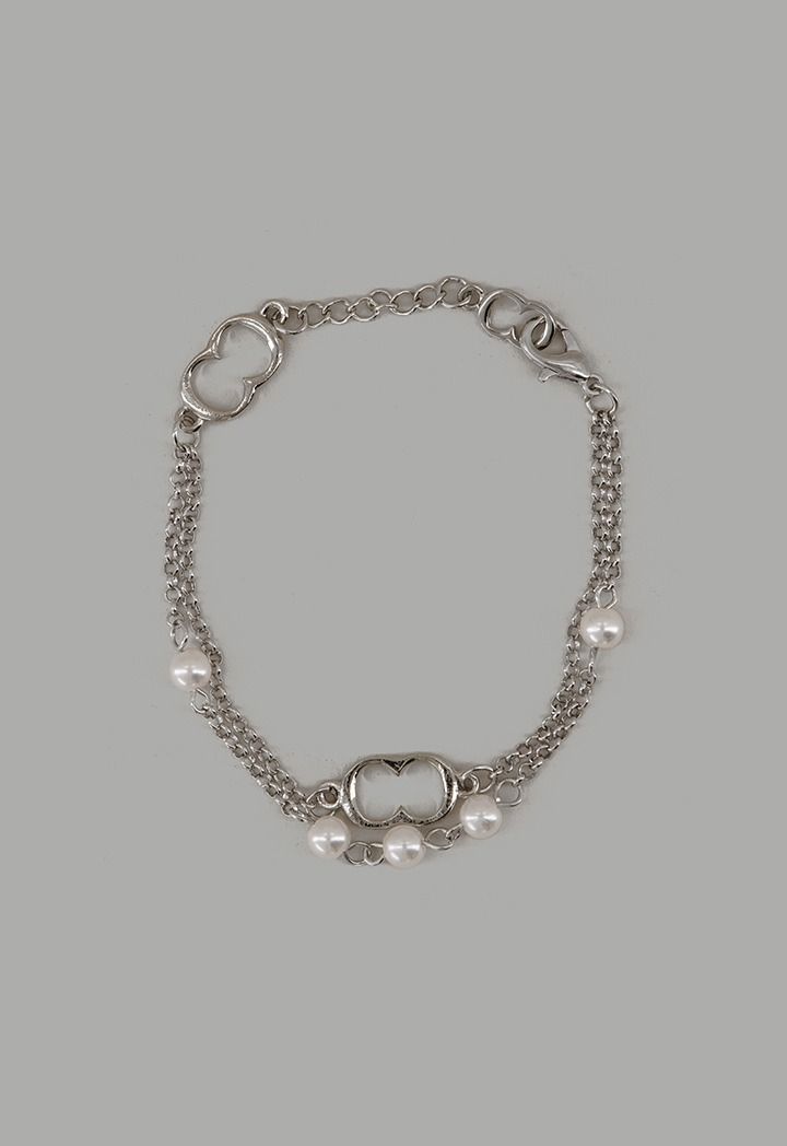 A casual bracelet that features a faux pearls monogram design.