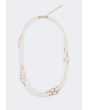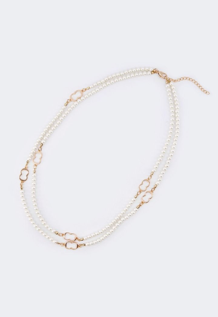 Include this monogram emblems and faux pearls necklace in your looks for a luxurious touch.