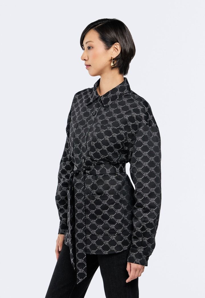 Elevate your elegance with our monogram jacquard belted shirt, where luxury meets detail.
