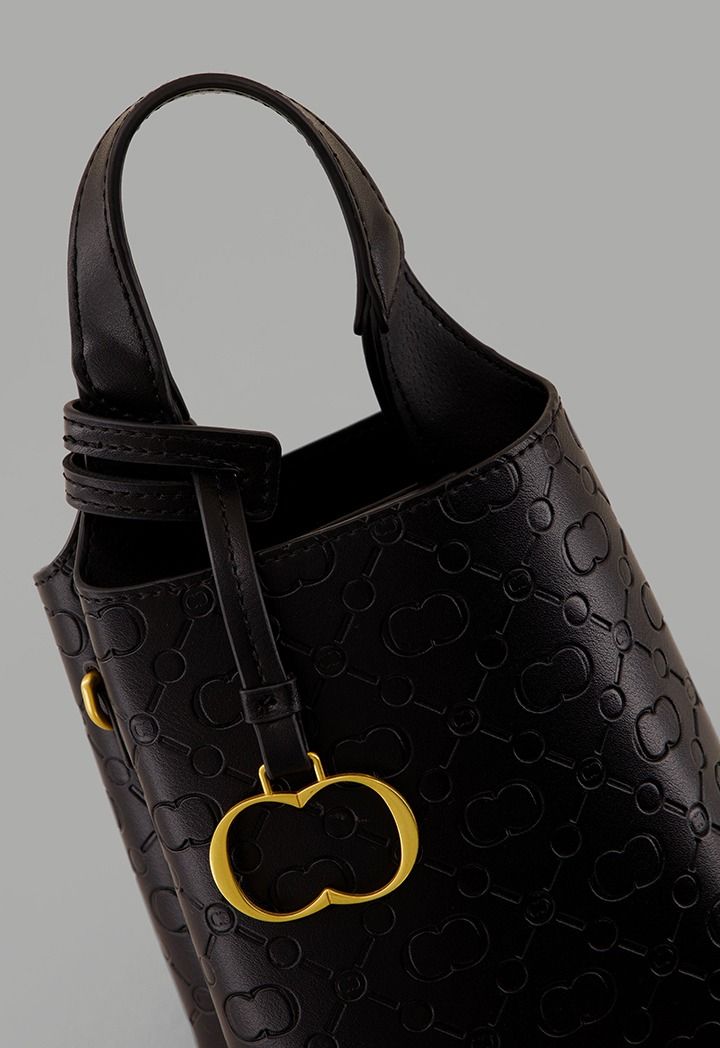 A simple and elegant mini handbag that features a printed monogram design that is sure to be up to your style.