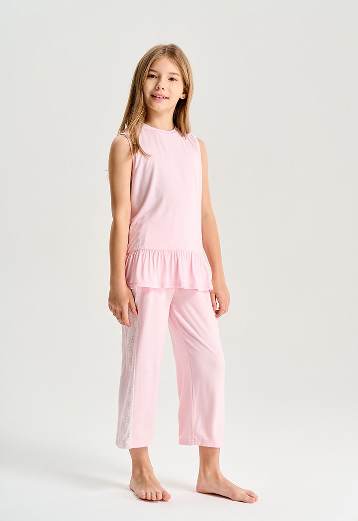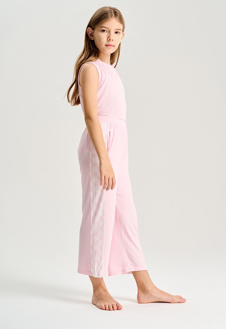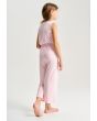 A cozy and simple set consisting of pajama pants, a solid sleeveless top and a long sleeve Robe.