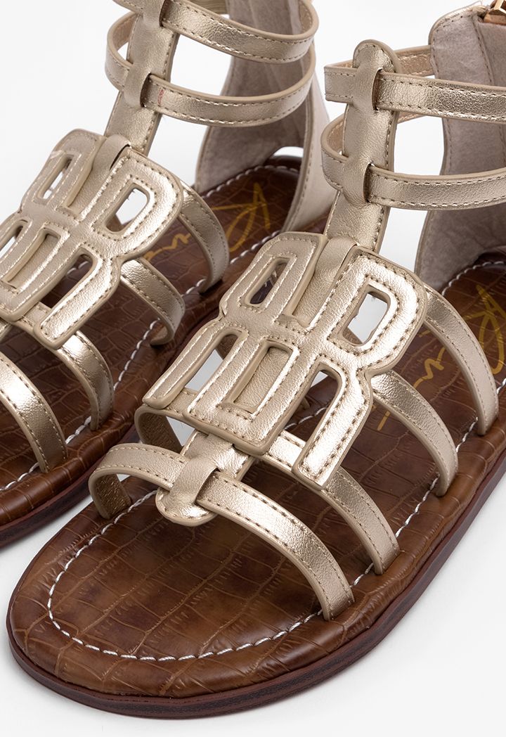 A durable pair of sandals to the little girls with the love to little details, featuring a monogram PU leather deign.