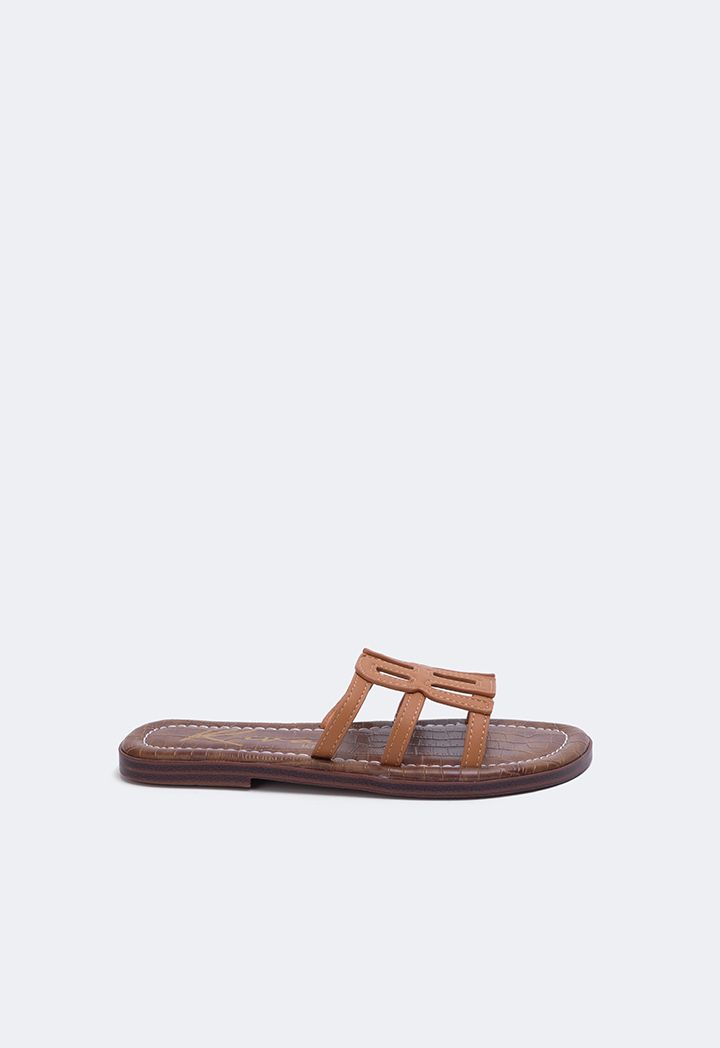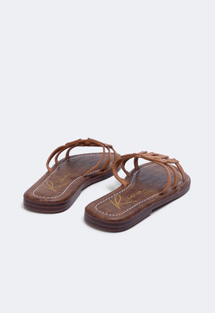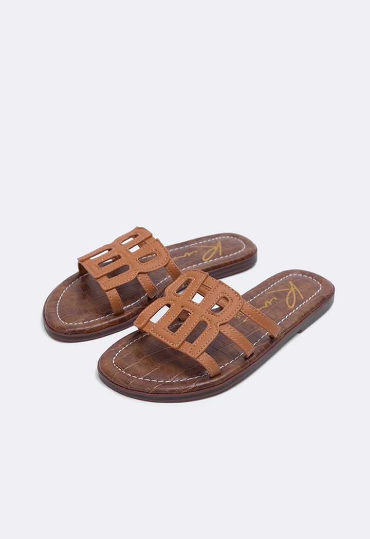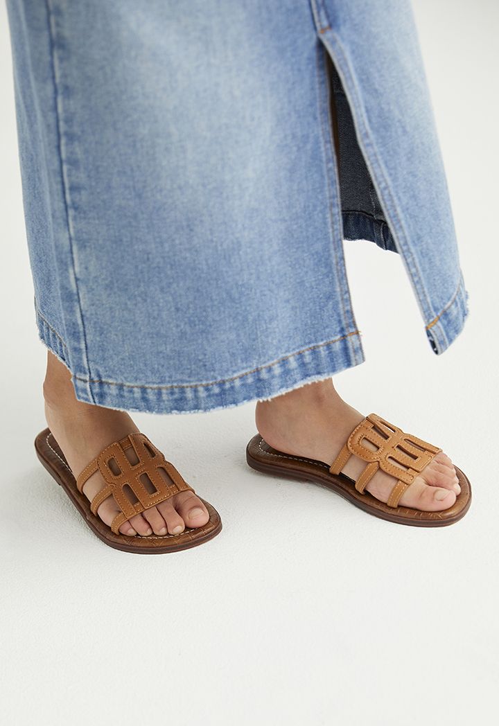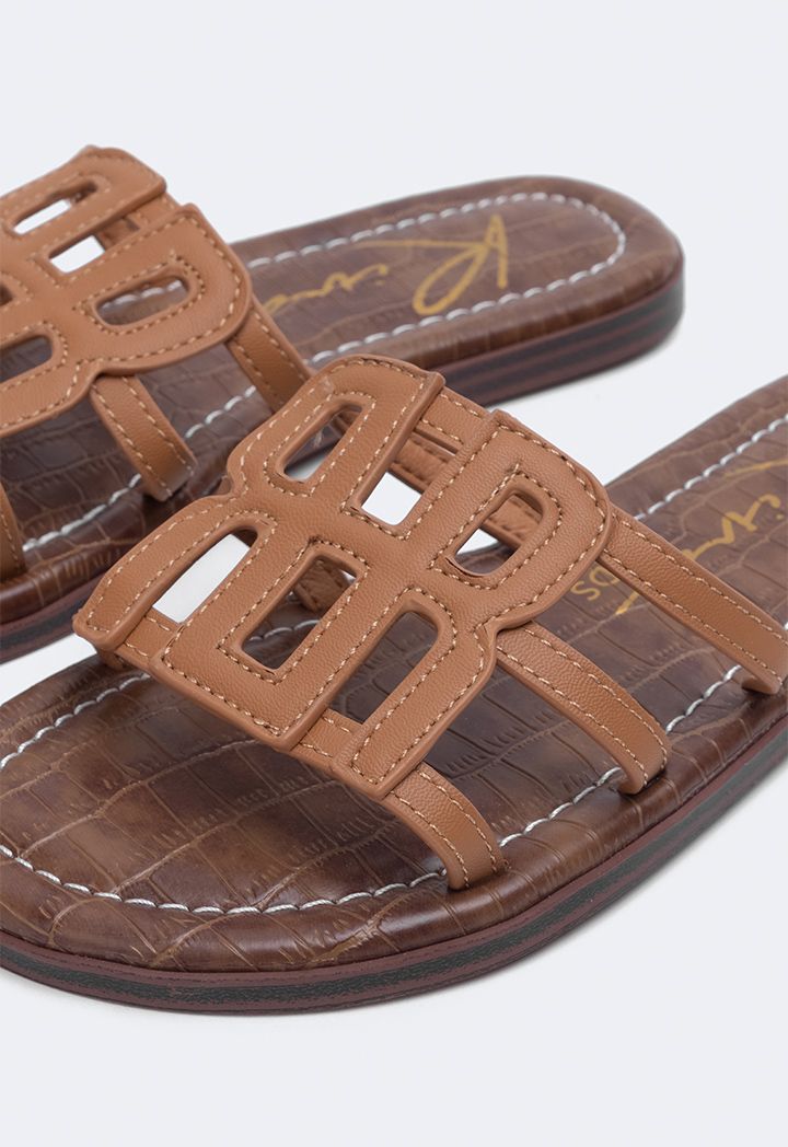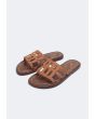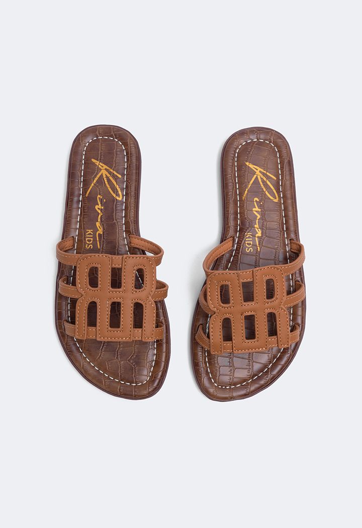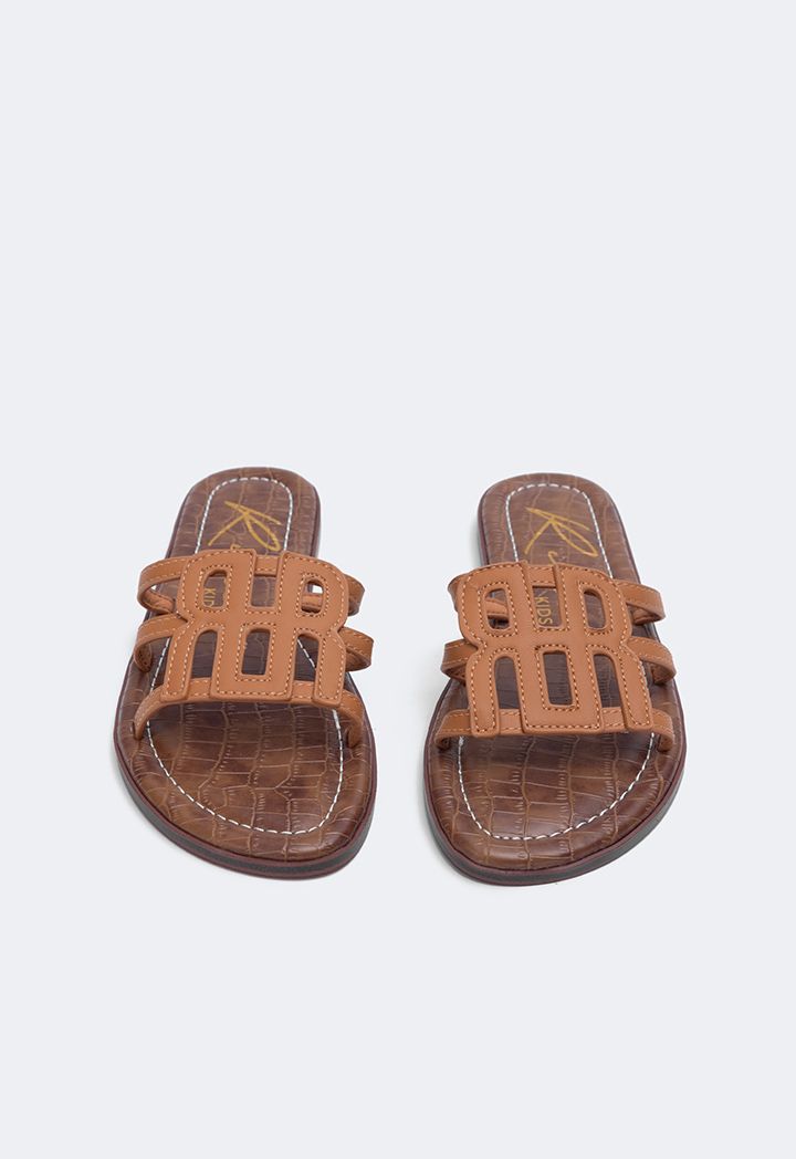 Camel Monogram PU Leather Slippers for Girls | Riva Fashion