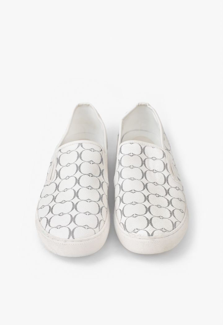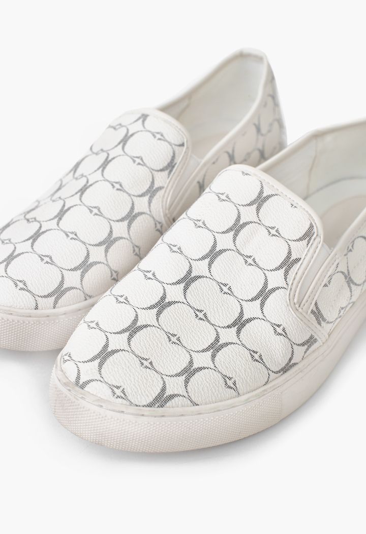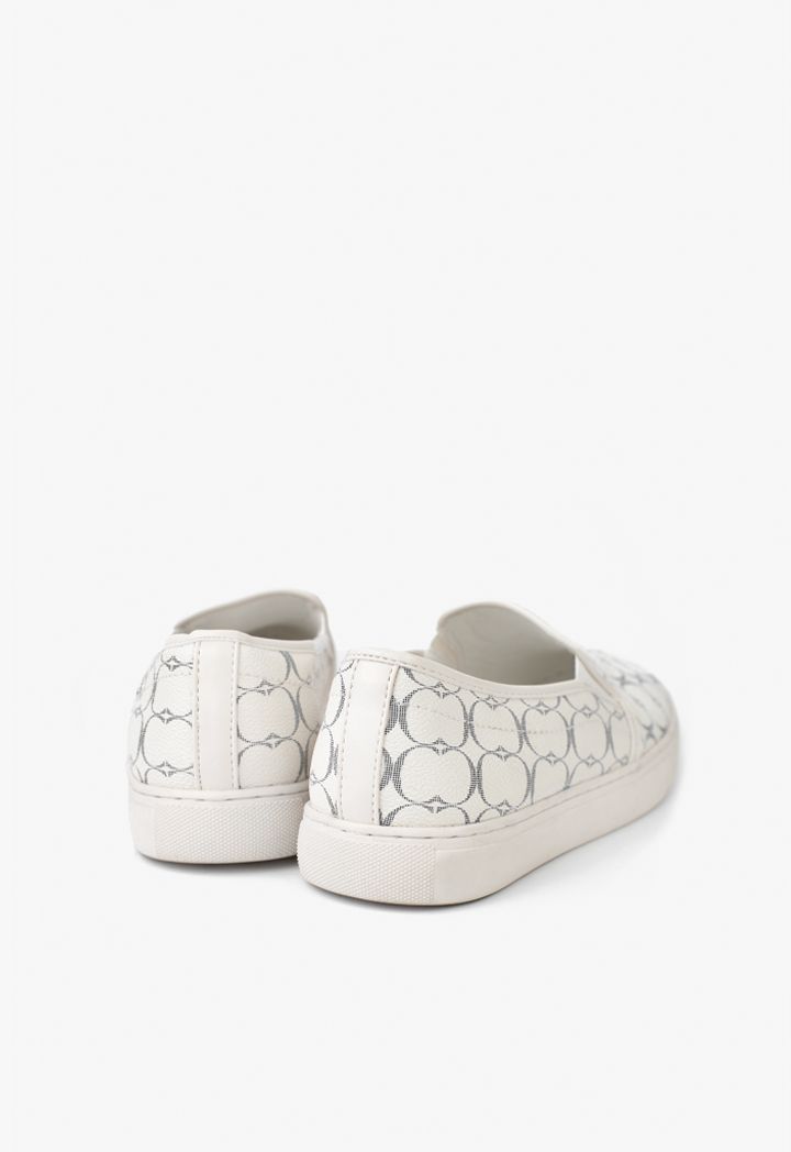 A slip on shoes that features a classic monogram design that is best styled with solid looks.