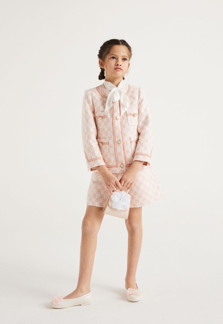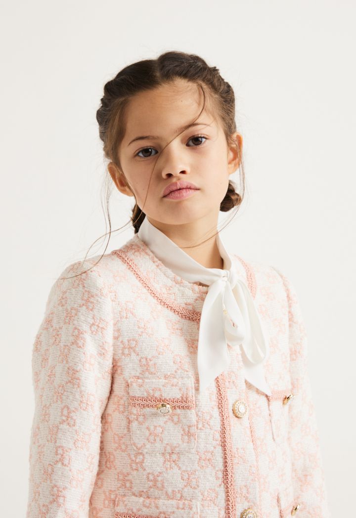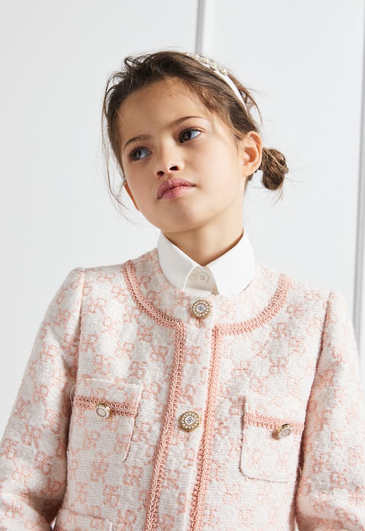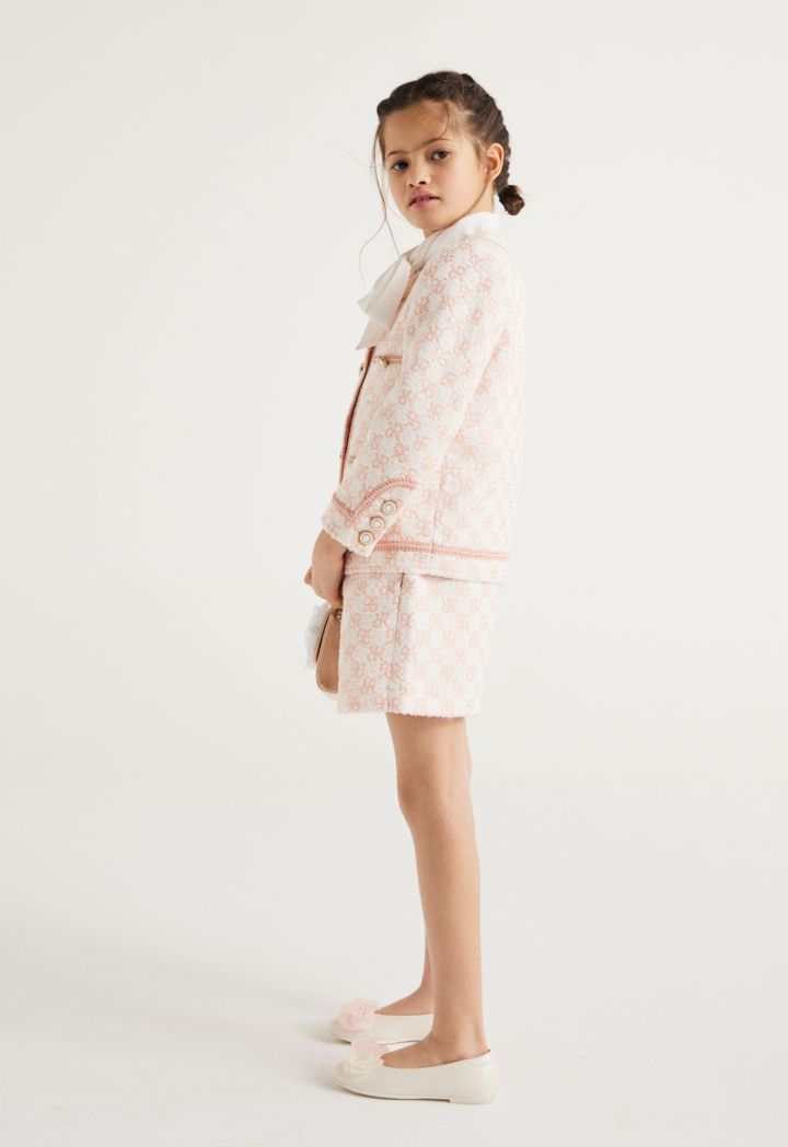Get this iconic and luxurious set to your little girl, featuring a monogram jacket and a matching pair of shorts.
