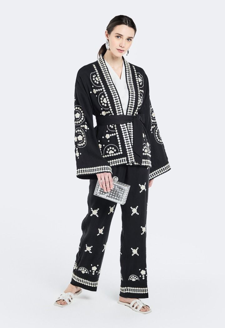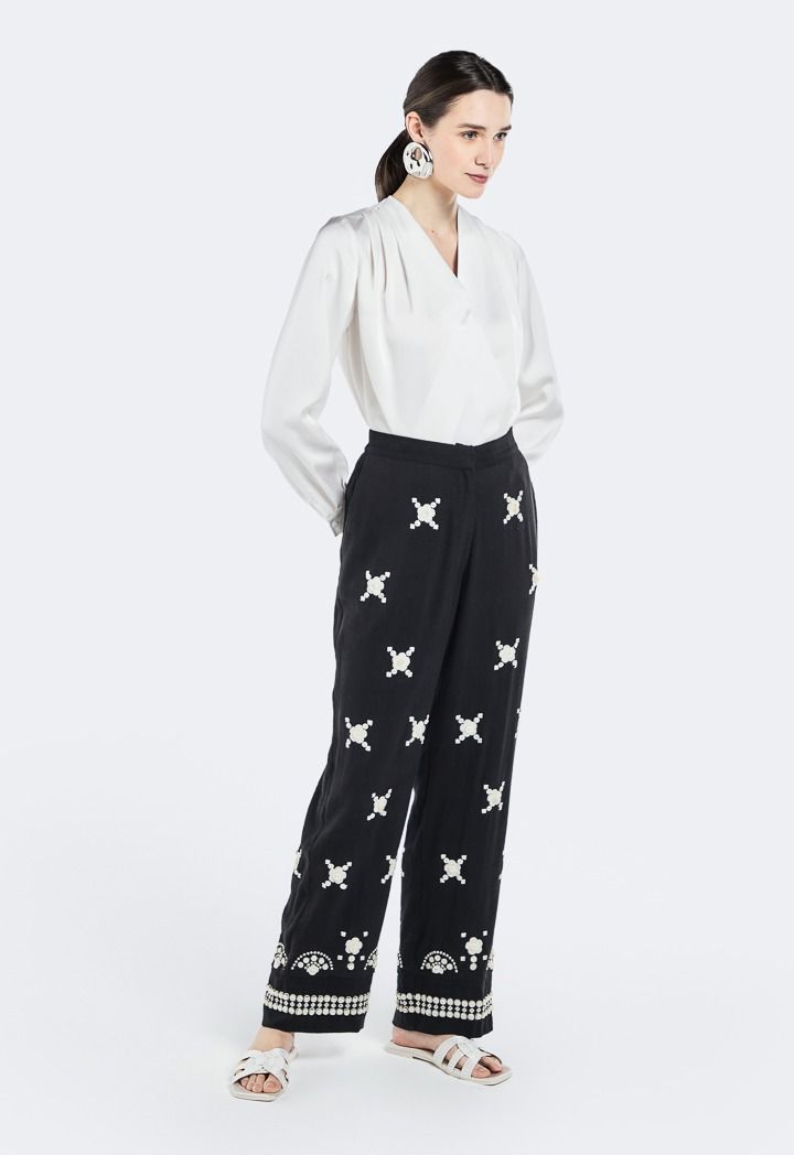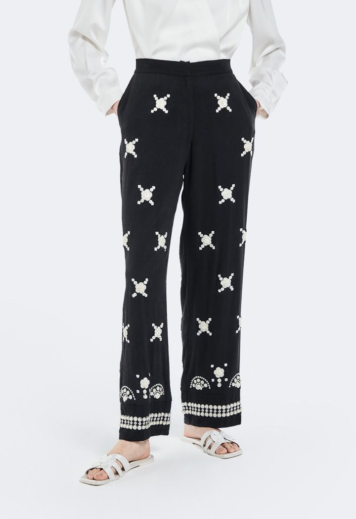 Adorned with Mother of Pearl Buttons throughout, it adds a touch of sophistication and dazzle to the overall style. These trousers will make a fashionable statement, reflecting your unique taste and charm.