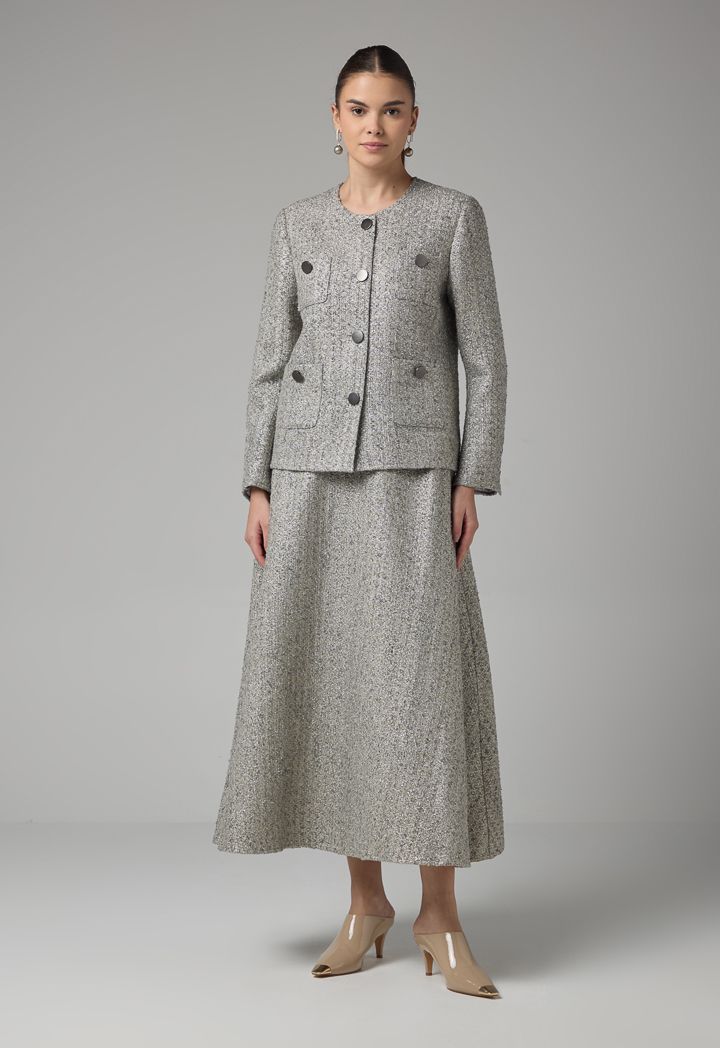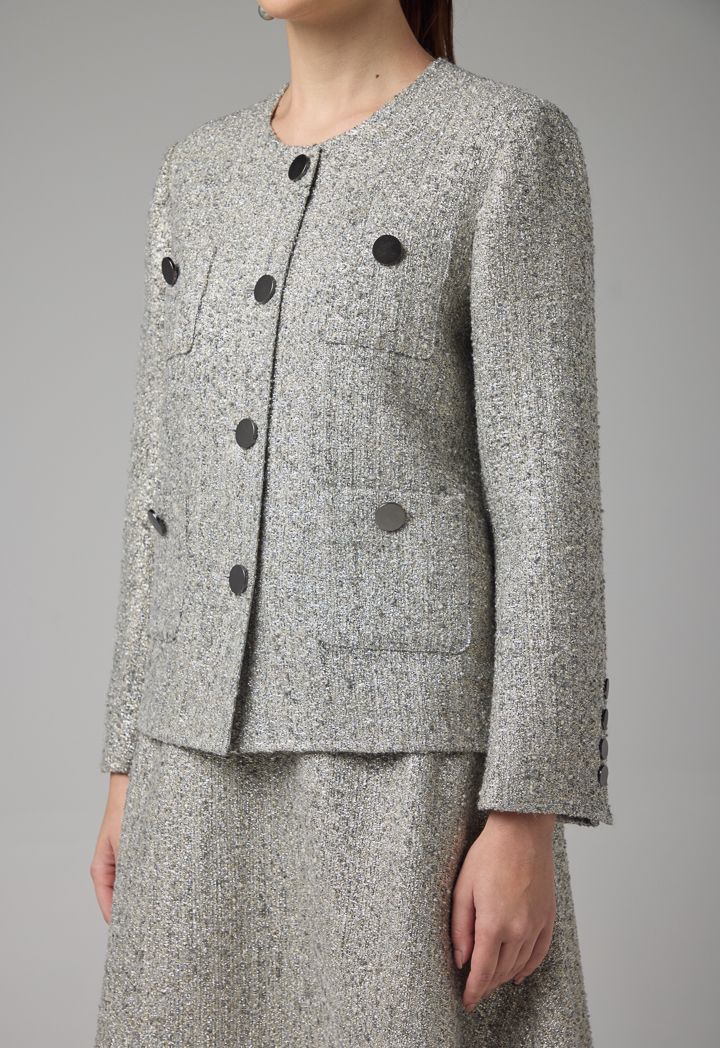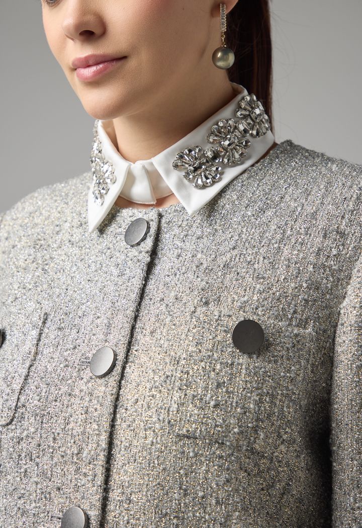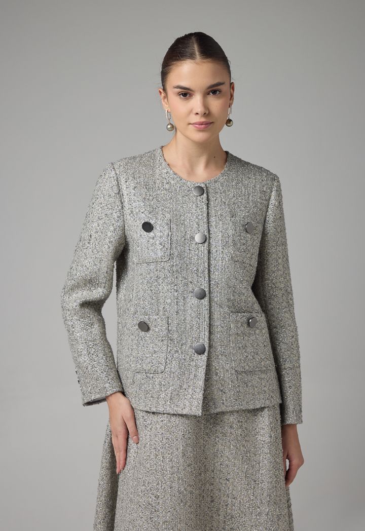 Add a stylish extra layer to your outfit with this smart Tweed Lurex Jacket.