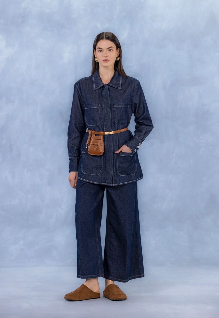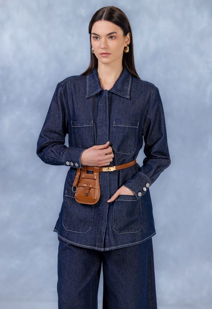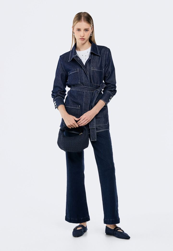 Design: Solid, Stitch Embellished, Patch Pockets, Belted