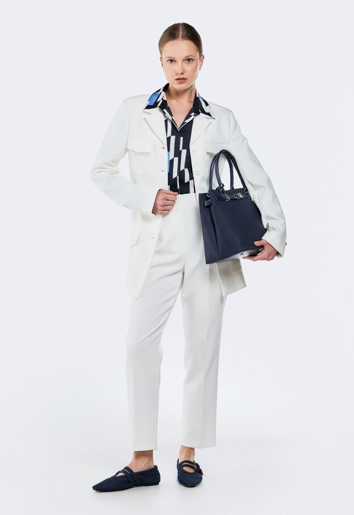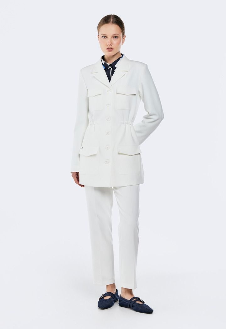 This Jacket exudes femininity with its simple Design, adding a touch of glamour to the new season.