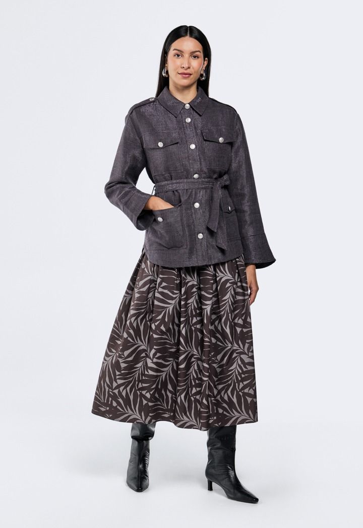 Add a pop of shine to your wardrobe with this eye-catching multi-pocket lurex jacket.