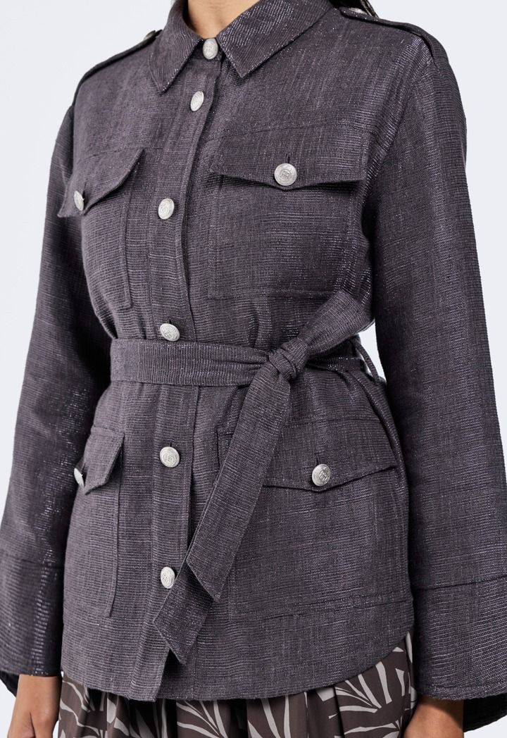 Multi-Pocket Lurex Linen Jacket |