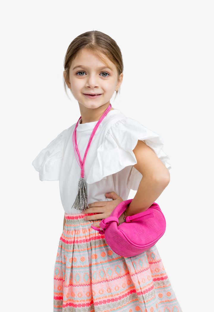 A two-toned beaded necklace that is perfect to be styled with your little girls summer or beach looks.
