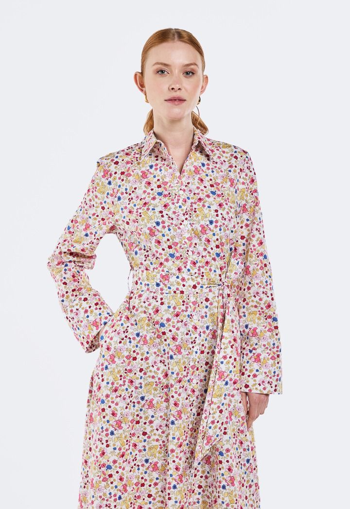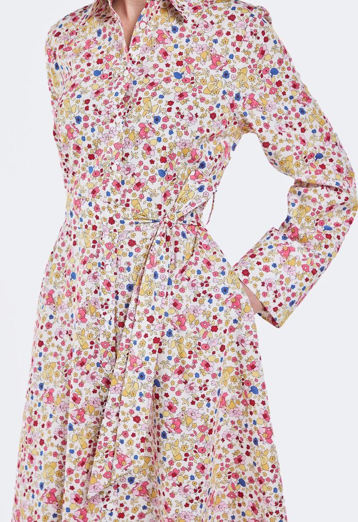 Design: Multicolor Floral Print, Side Pockets, Belted
