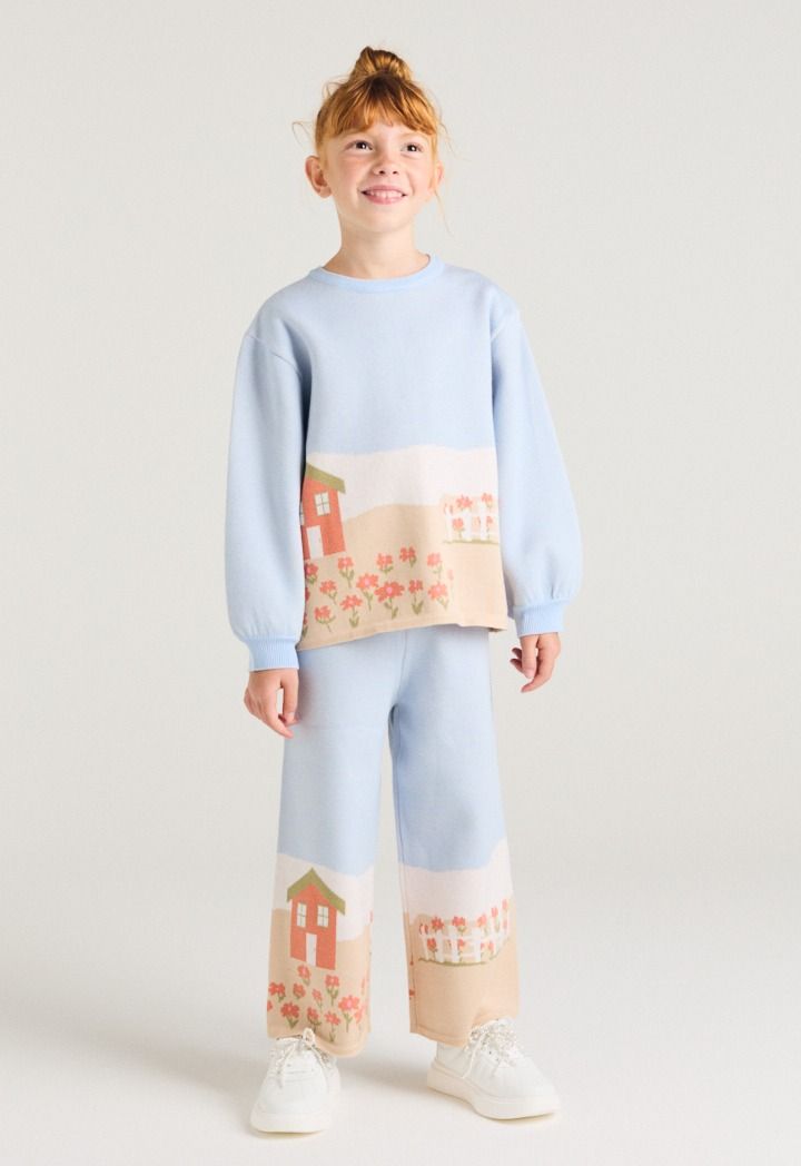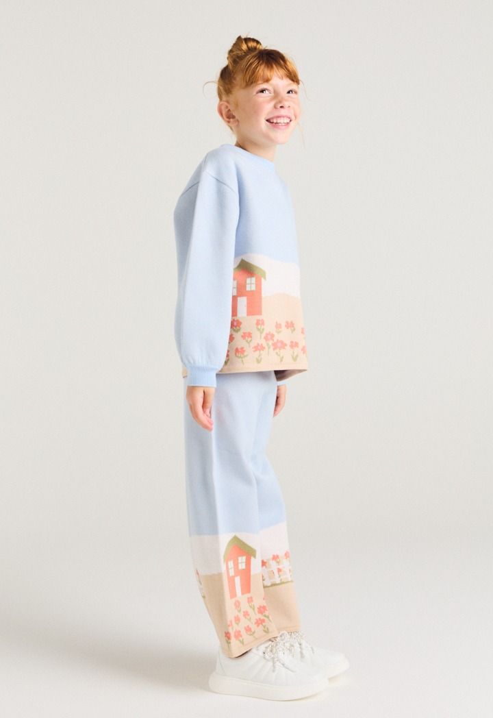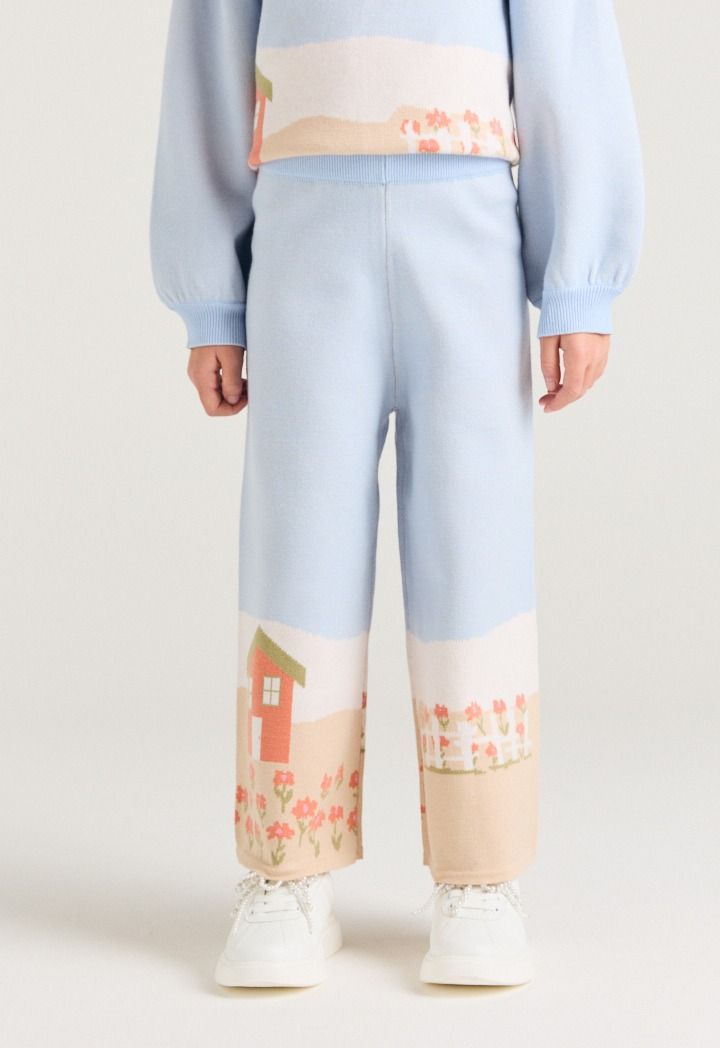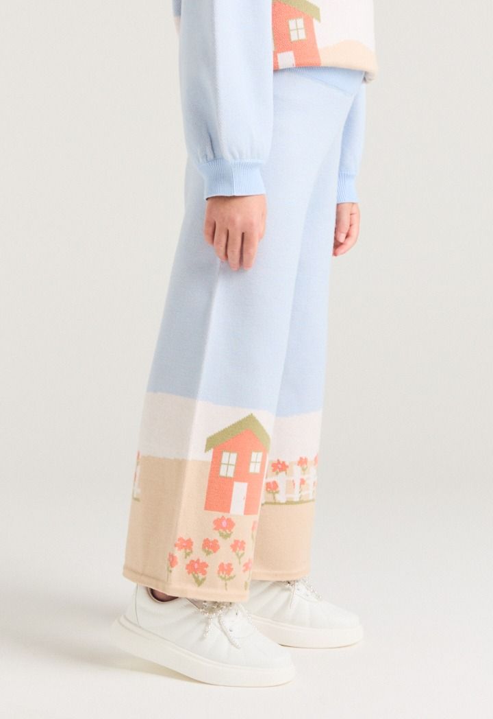 A pair of multicolored knitted pants, that are best styled with their matching sweater.