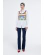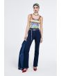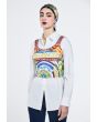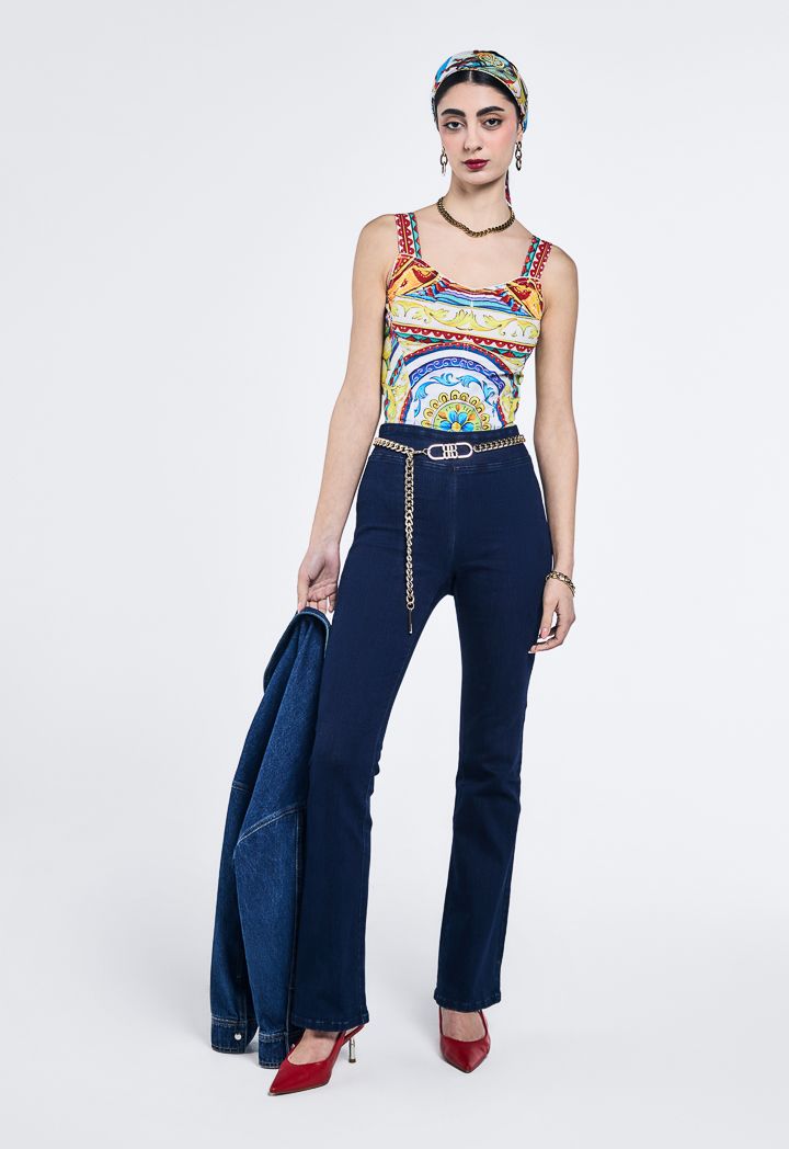 A comfortable top features back zip detail. The sleeveless cut and the colorful print make it the perfect summer top.